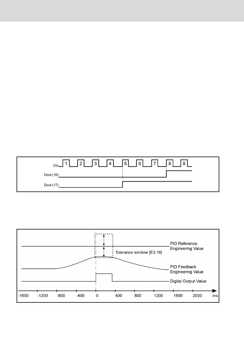 by E3.16, the output is active until the PID feedback engineering value leaves