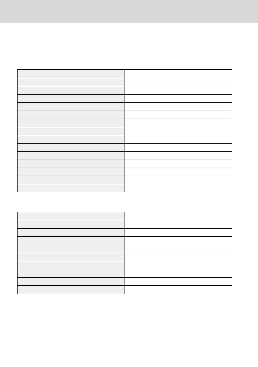 described in the tables below: