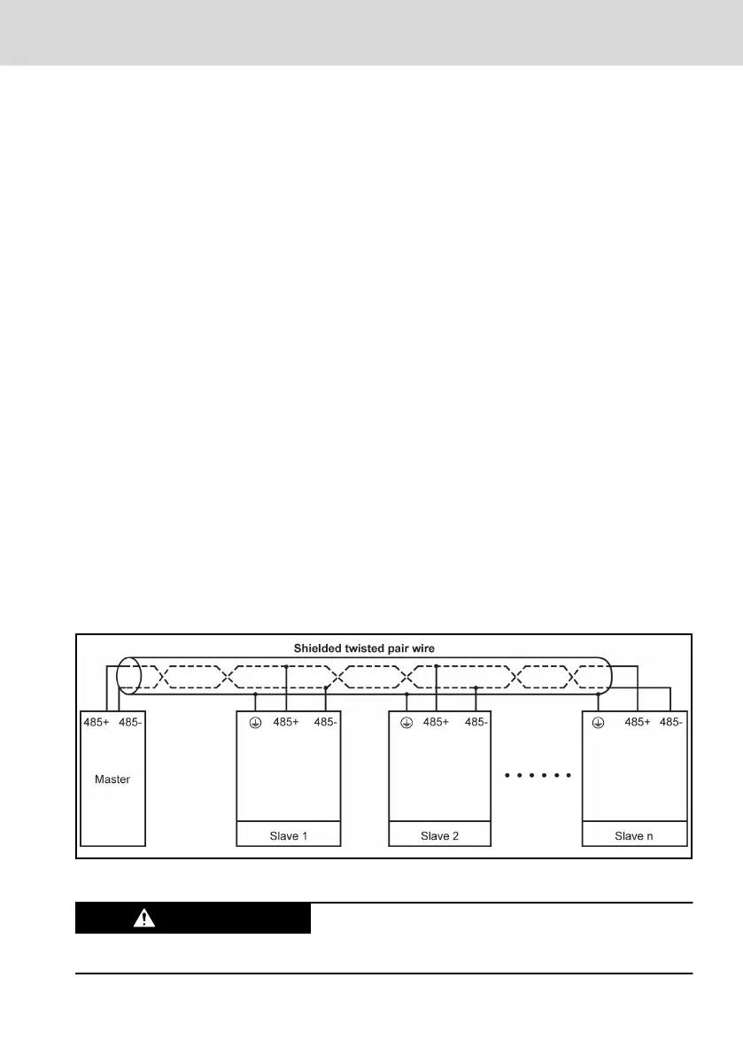 are connected by shielded twisted pair cables. The slave at the end of the net-