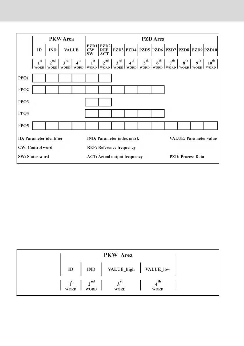 word in PKW area is shown in the tables below. If a frequency converter fails to