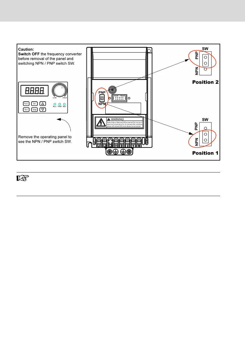● The factory default setting of switch SW is NPN.