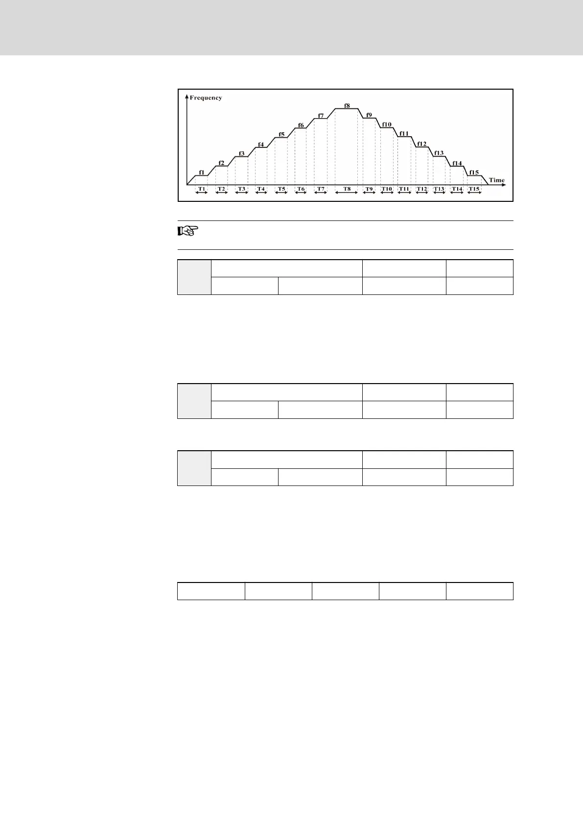 f1...f15 are set by parameters E2.06...E2.20, and T1...T15 are set