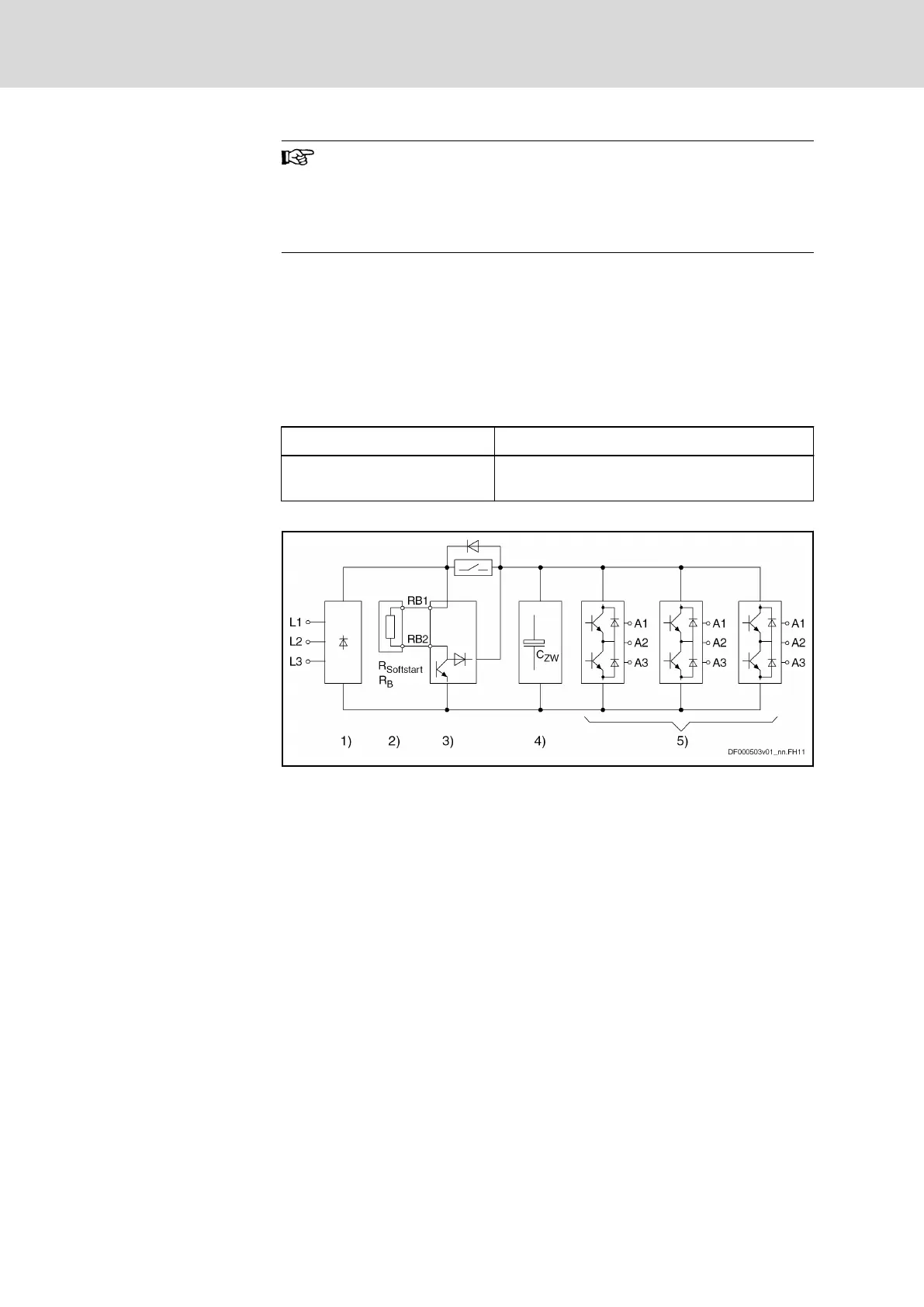 3) Braking resistor circuit; charging current limitation; external resistor re‐