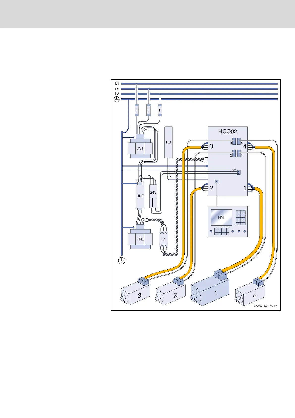 Fig.1-1: Drive System Rexroth IndraDrive C with 4‑Axis Converter HCQ02