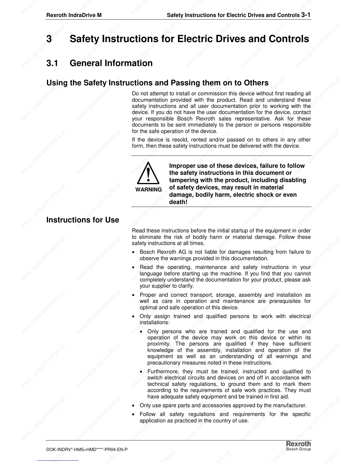 Rexroth IndraDrive M Safety Instructions for Electric Drives and Controls 3-1