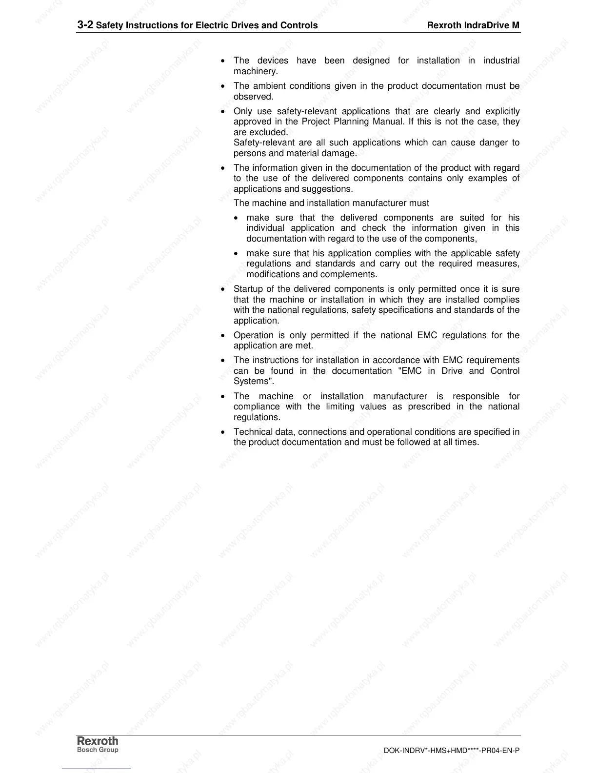 3-2 Safety Instructions for Electric Drives and Controls Rexroth IndraDrive M