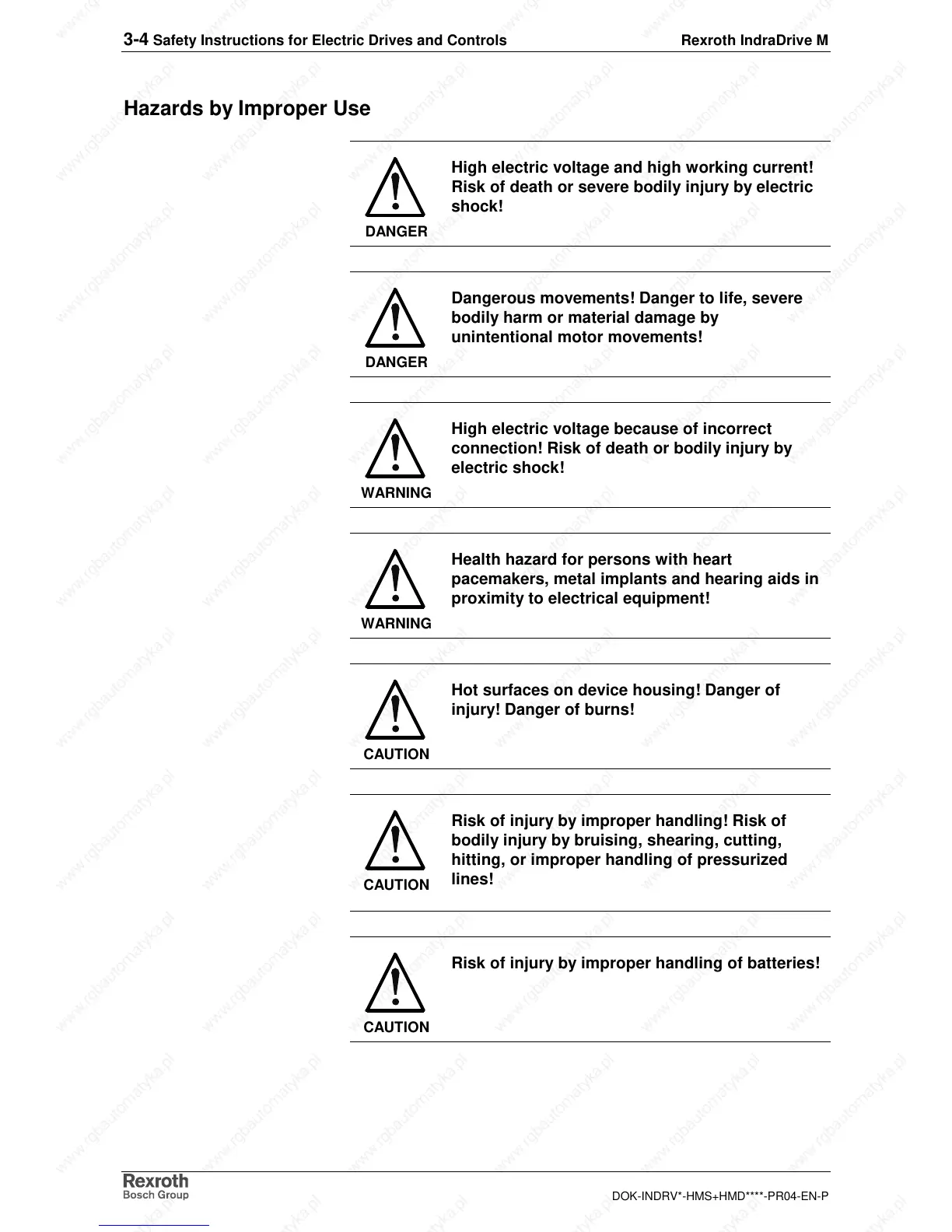 3-4 Safety Instructions for Electric Drives and Controls Rexroth IndraDrive M