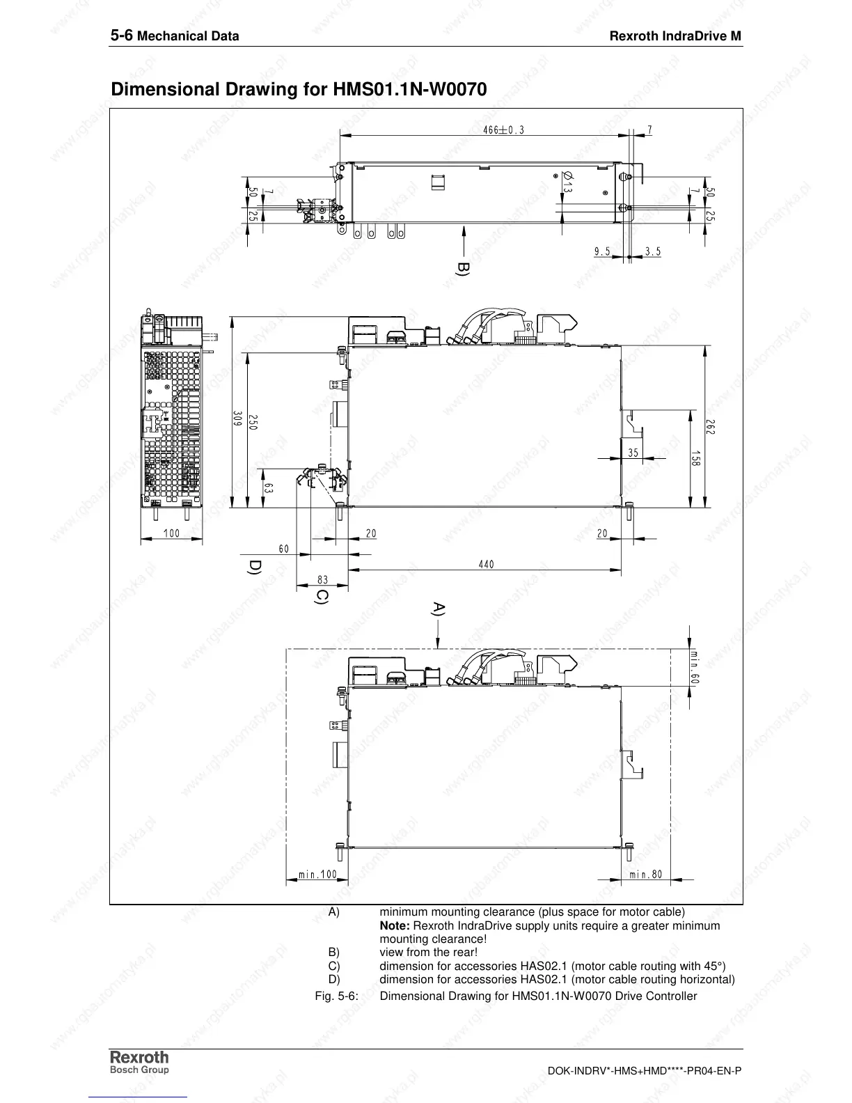 Fig. 5-6: Dimensional Drawing for HMS01.1N-W0070 Drive Controller