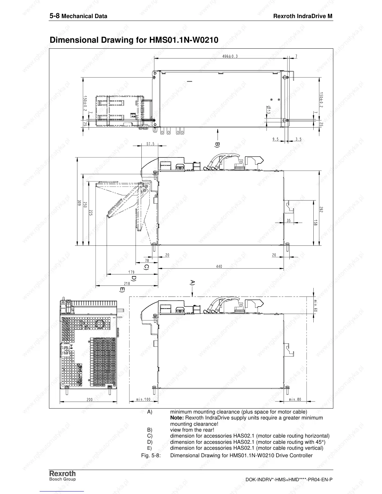 Fig. 5-8: Dimensional Drawing for HMS01.1N-W0210 Drive Controller