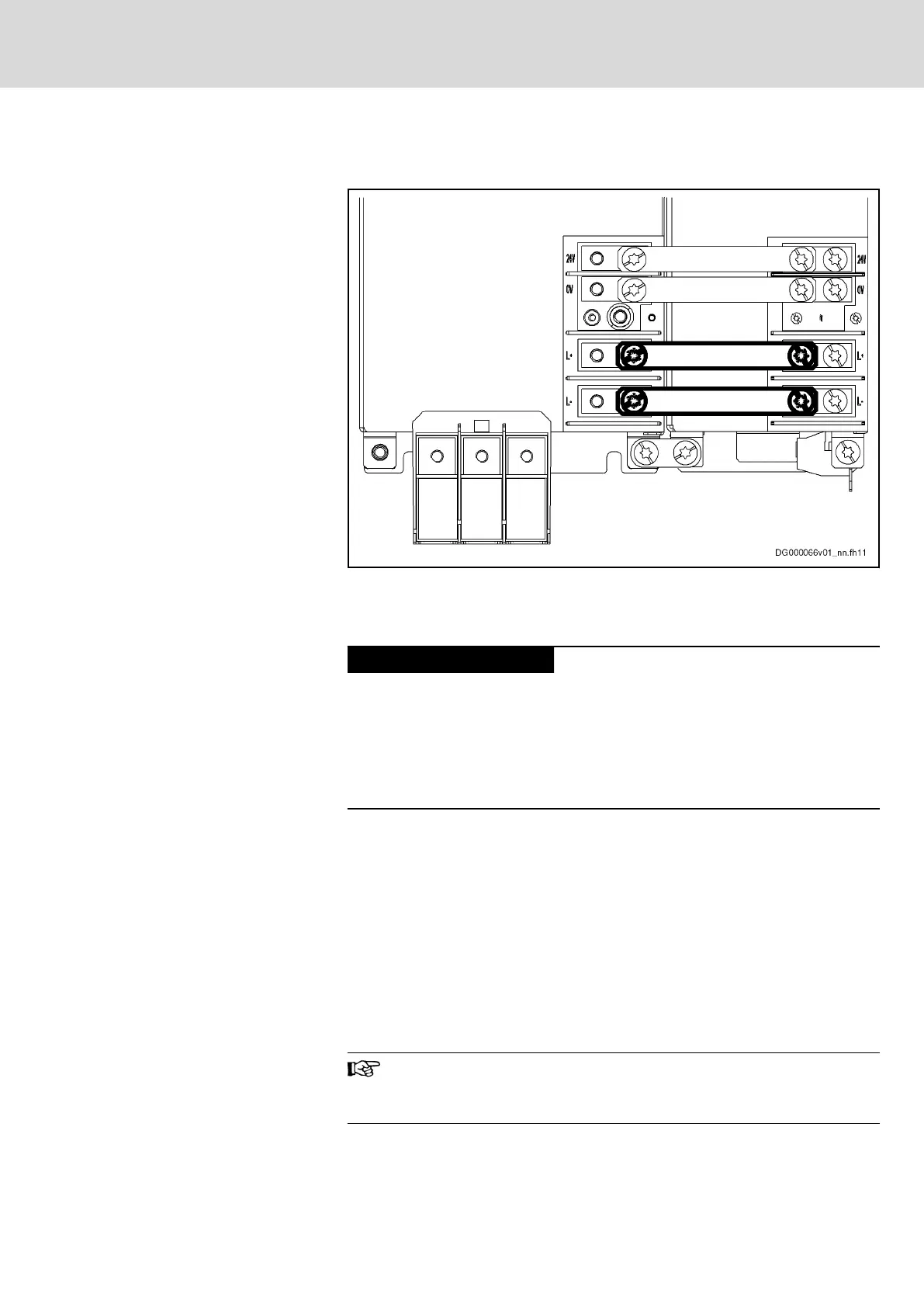 For multiple-line arrangement of drive controllers, the connection for DC bus