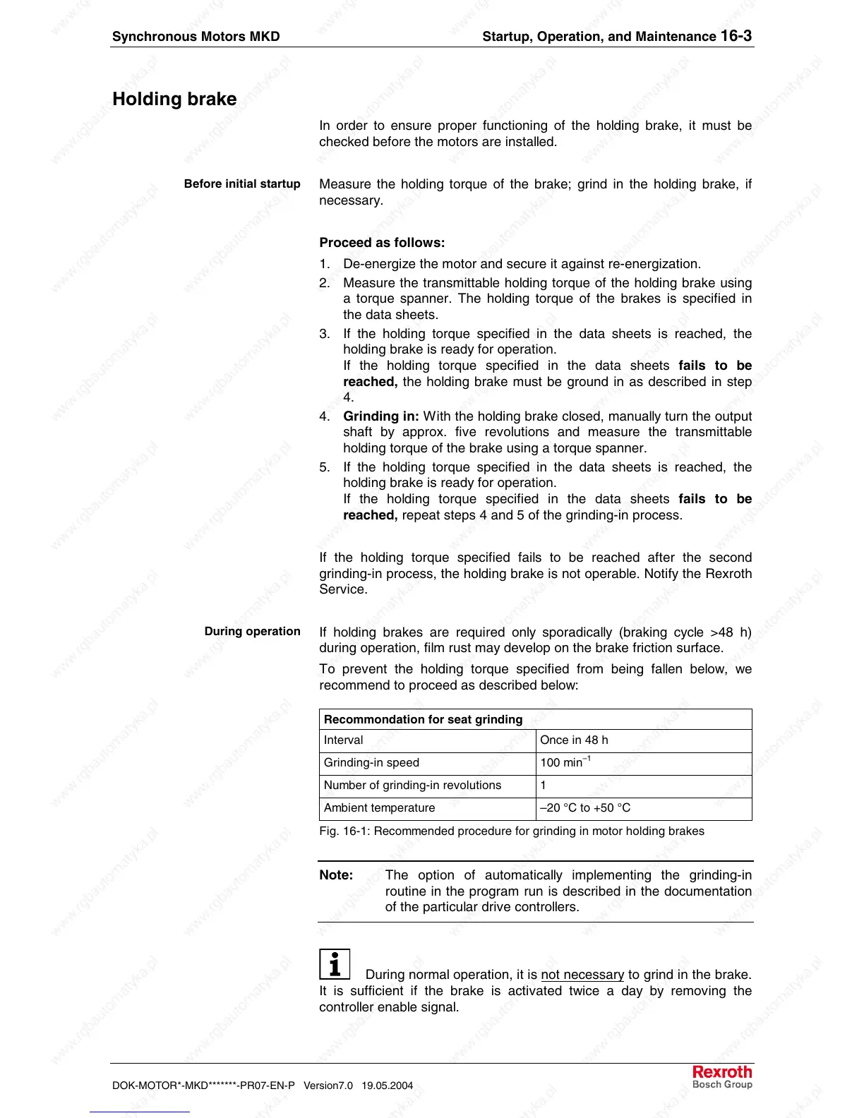 grinding-in process, the holding brake is not operable. Notify the Rexroth
