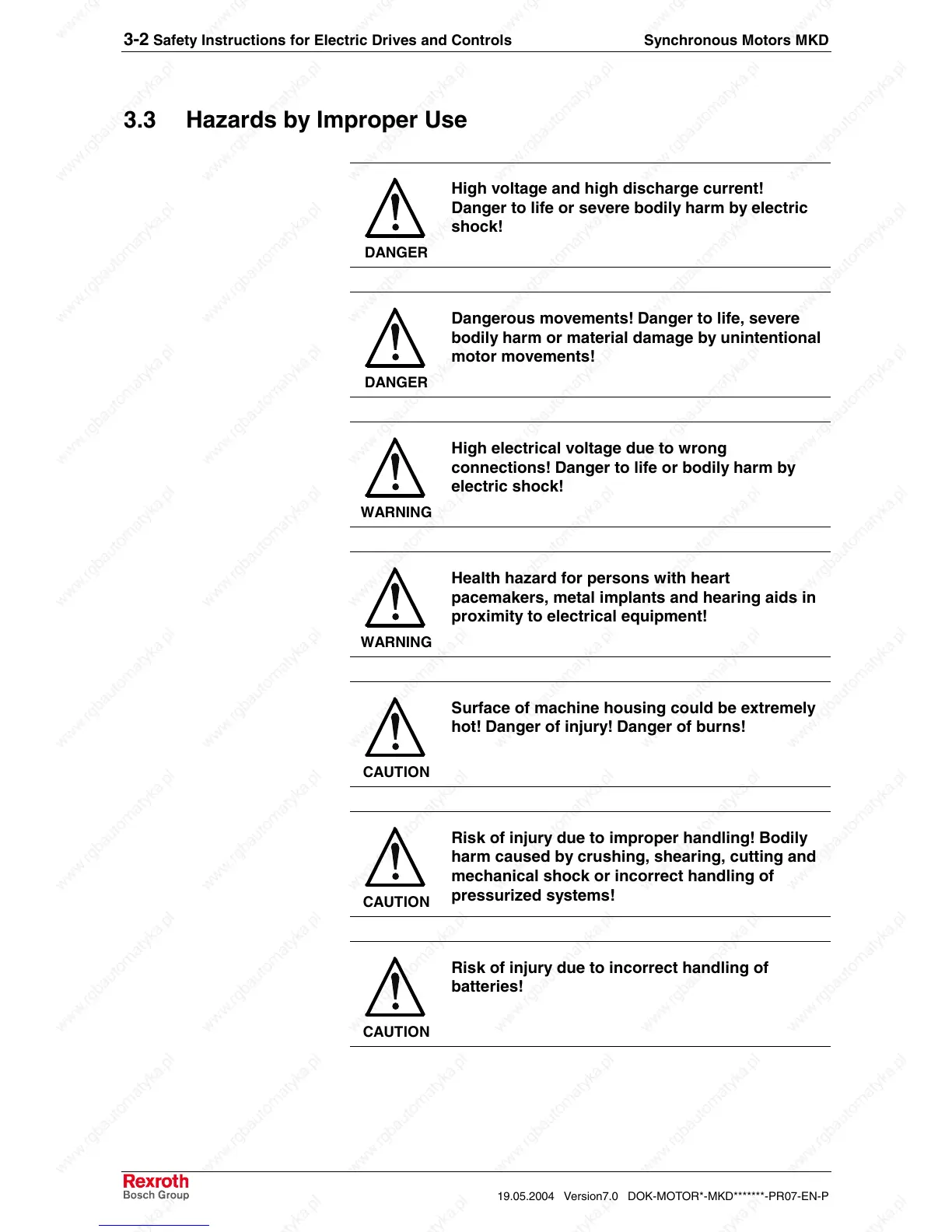 3-2 Safety Instructions for Electric Drives and Controls Synchronous Motors MKD