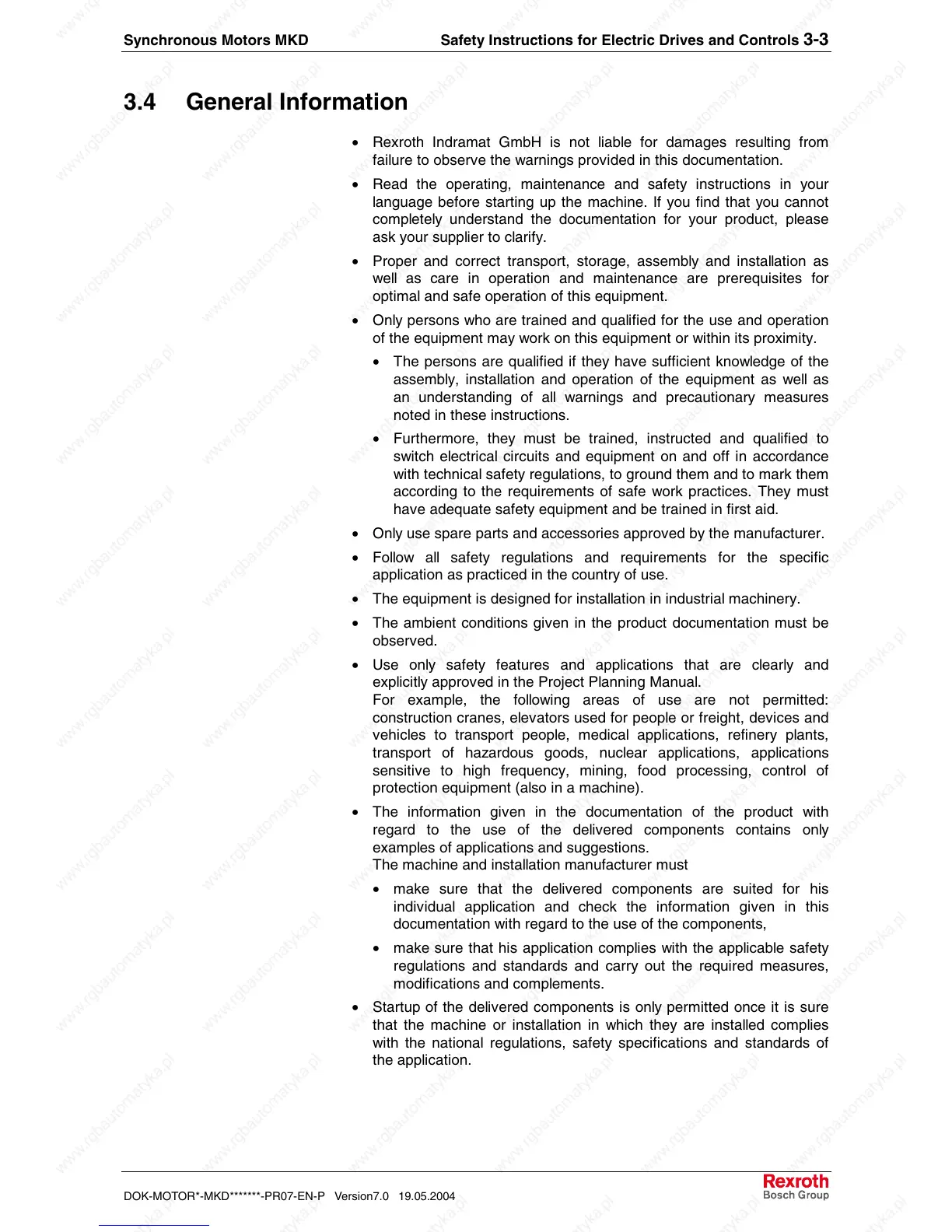 Synchronous Motors MKD Safety Instructions for Electric Drives and Controls 3-3