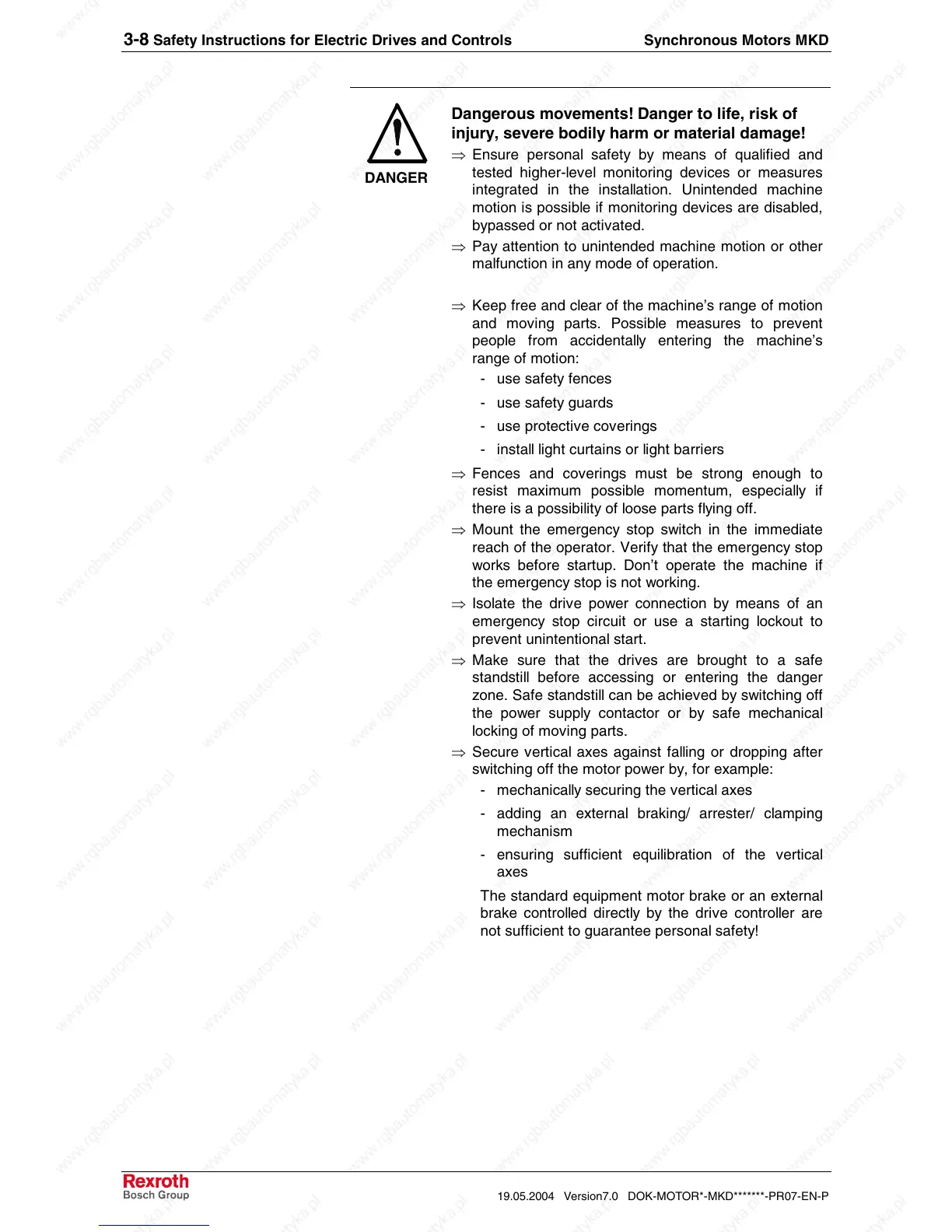 3-8 Safety Instructions for Electric Drives and Controls Synchronous Motors MKD