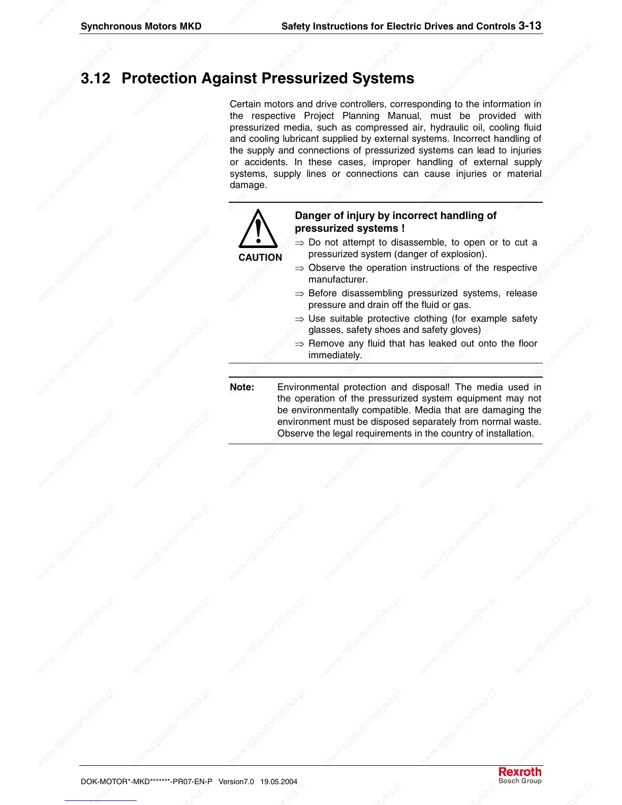 Synchronous Motors MKD Safety Instructions for Electric Drives and Controls 3-13