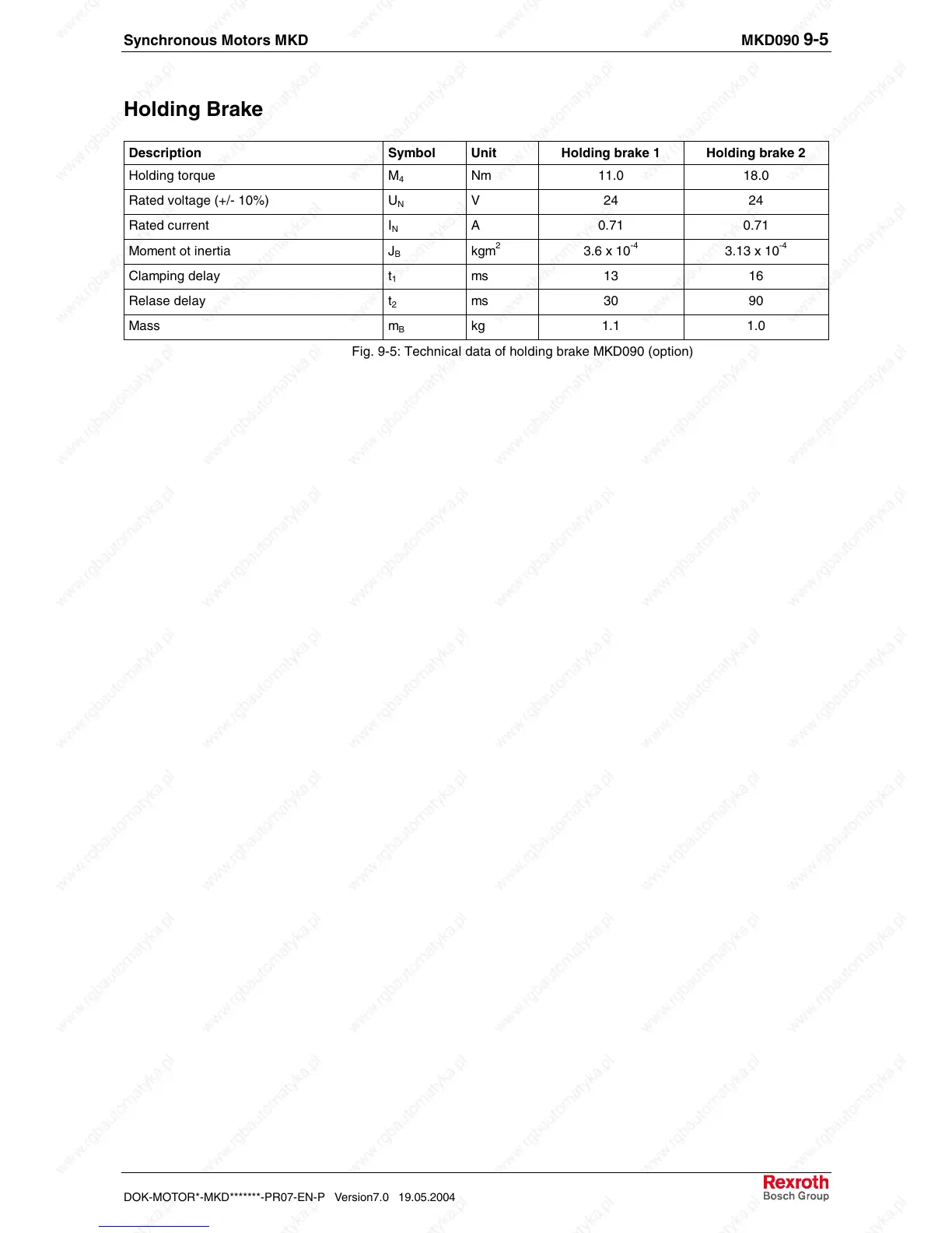Fig. 9-5: Technical data of holding brake MKD090 (option)