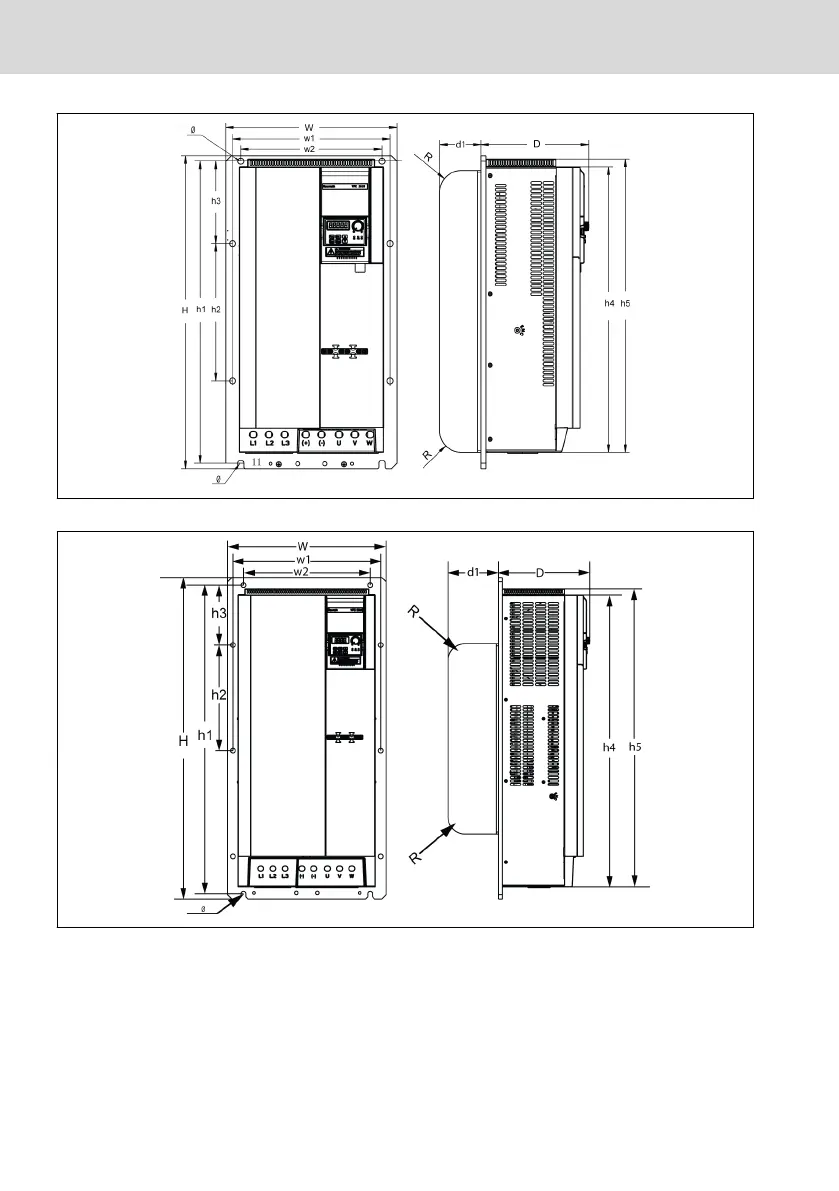 Fig. 1-10: VFC 5610 45K0...55K0 dimensions figure (wall-through models)