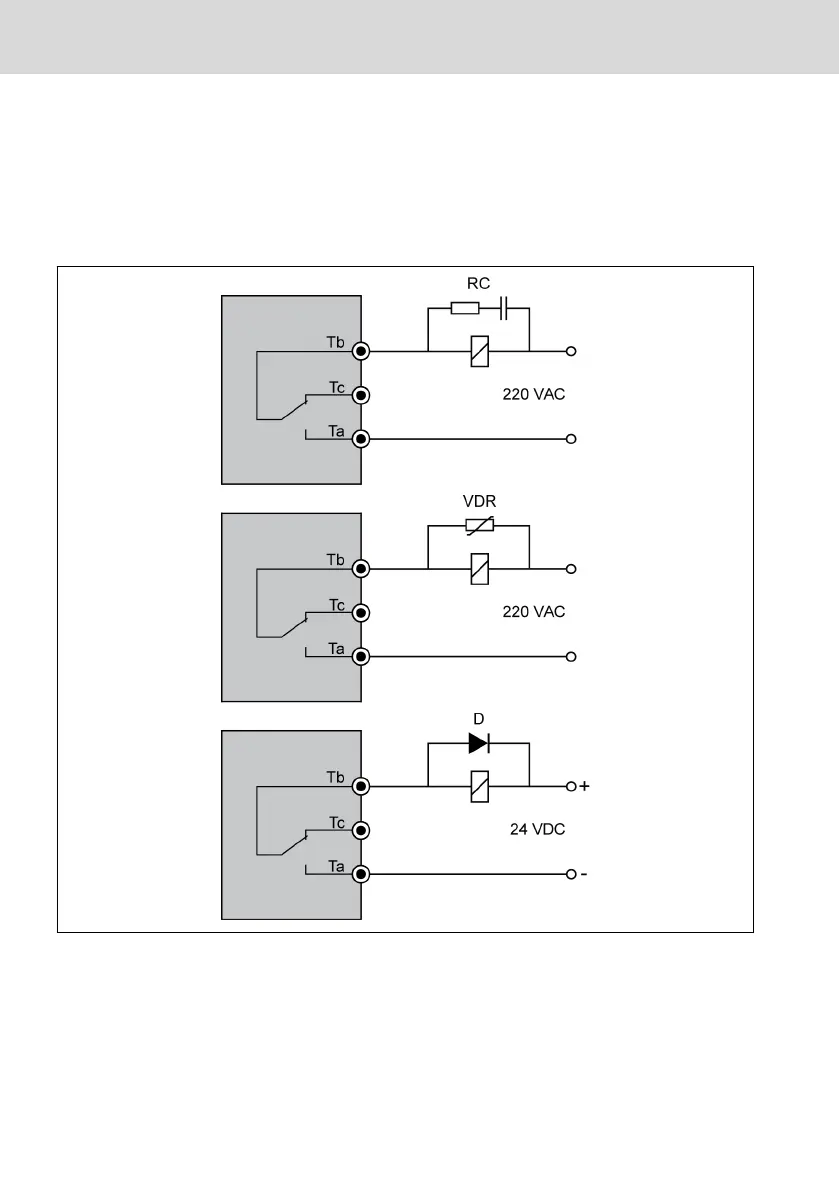 Fig. 2-9: Noise suppression circuits for relay output terminals