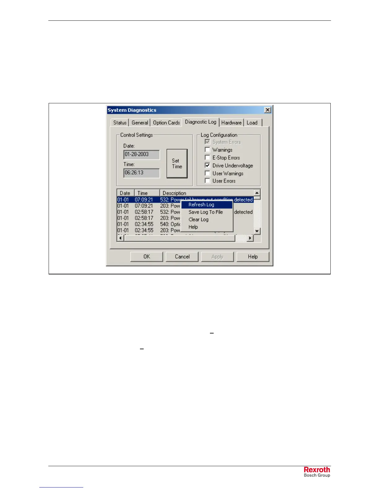 Fig. 2-7: Diagnostic Log Options
