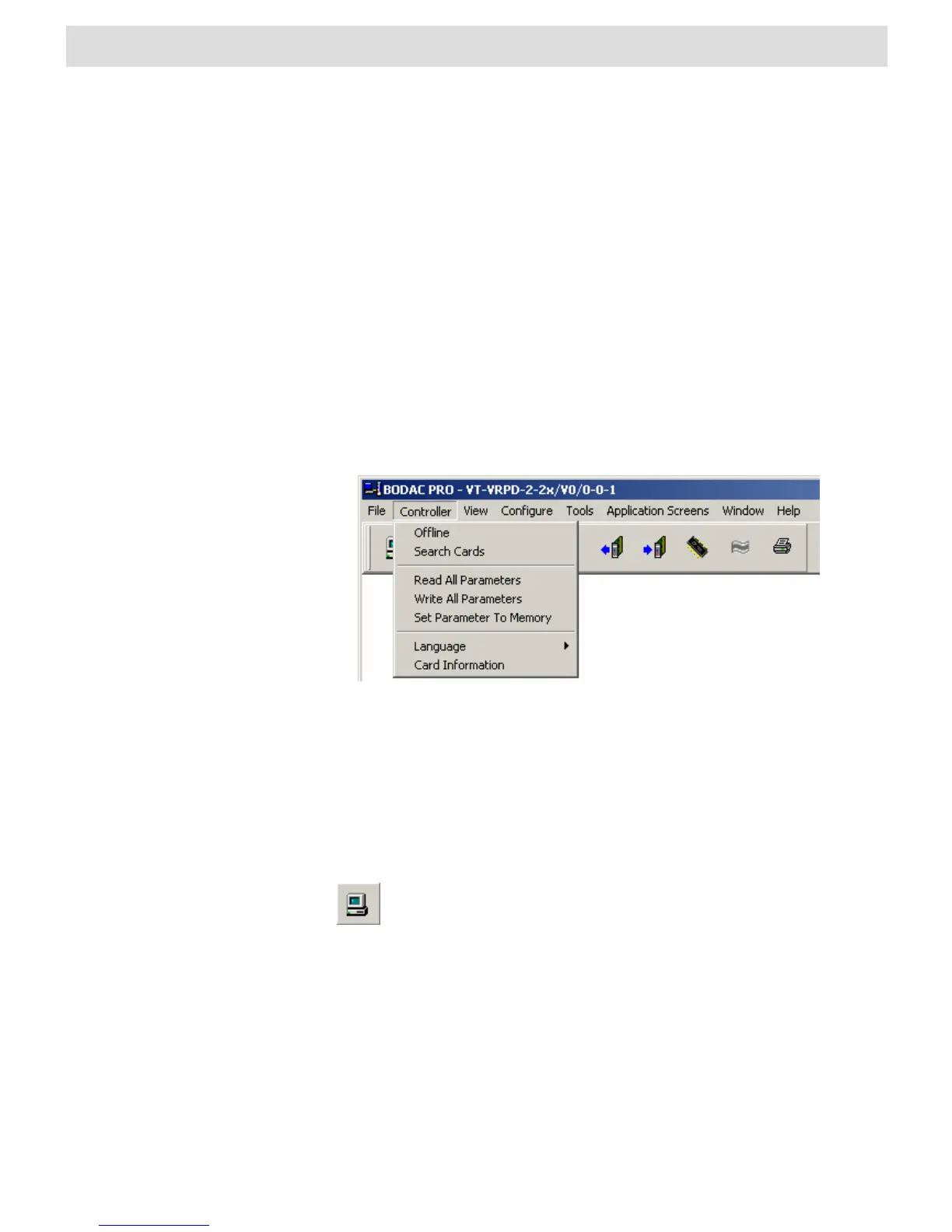 The “Controller” menu contains commands for direct communication with the card.