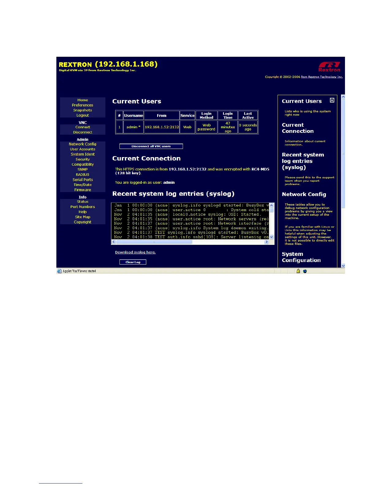 This link allows you to monitor the records about current login users, current connection, recent