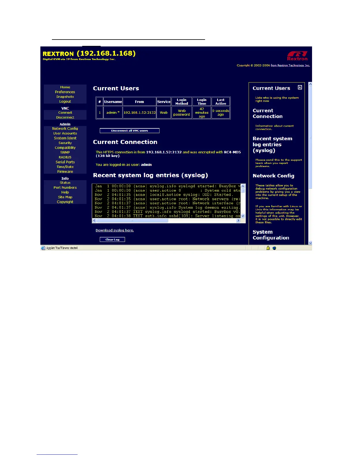 • Recent System Log: it records every log entry, including what time the user log in, what