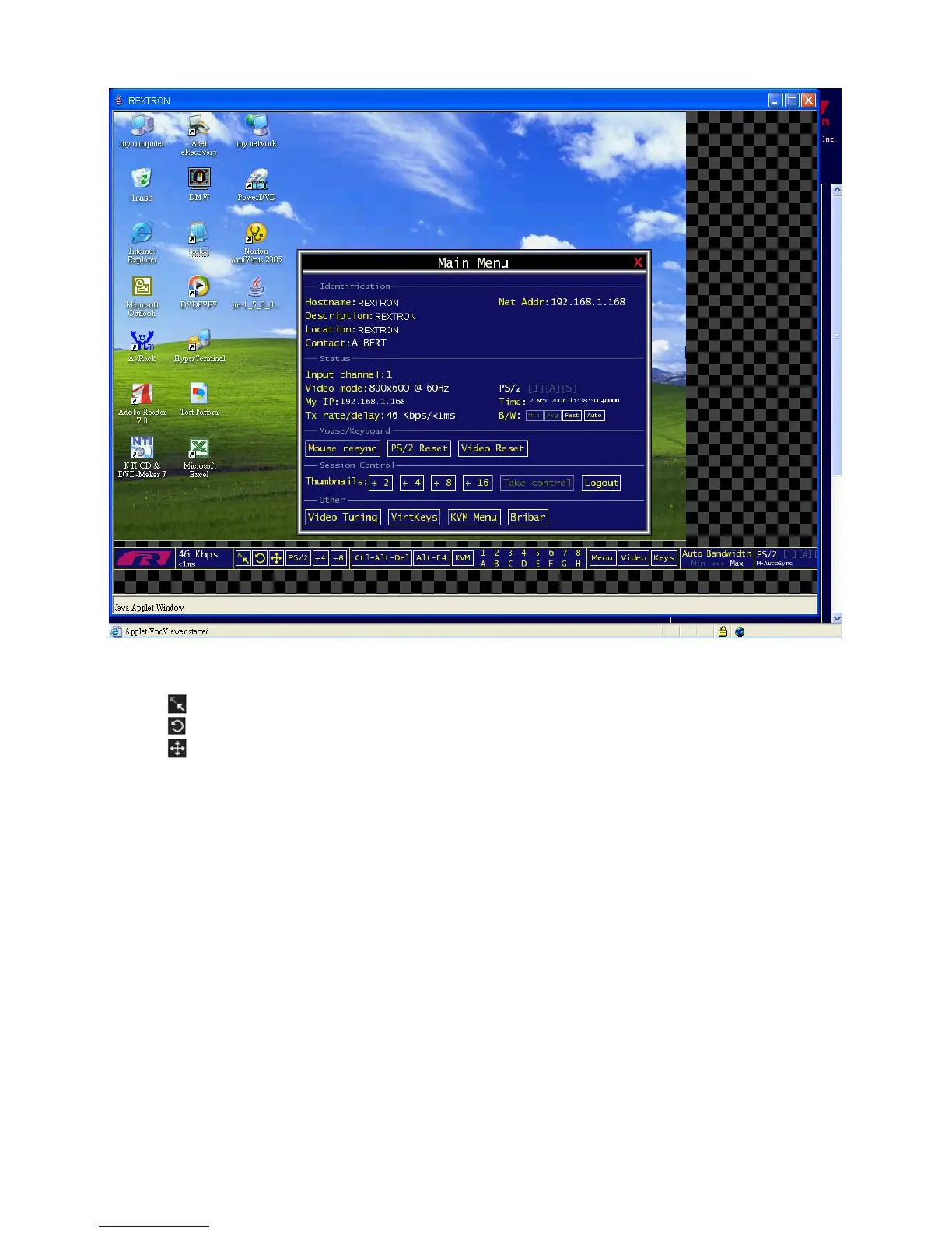 Keys: Shows the VirtKeys menu, which allows you to simulate pressing special keys such as