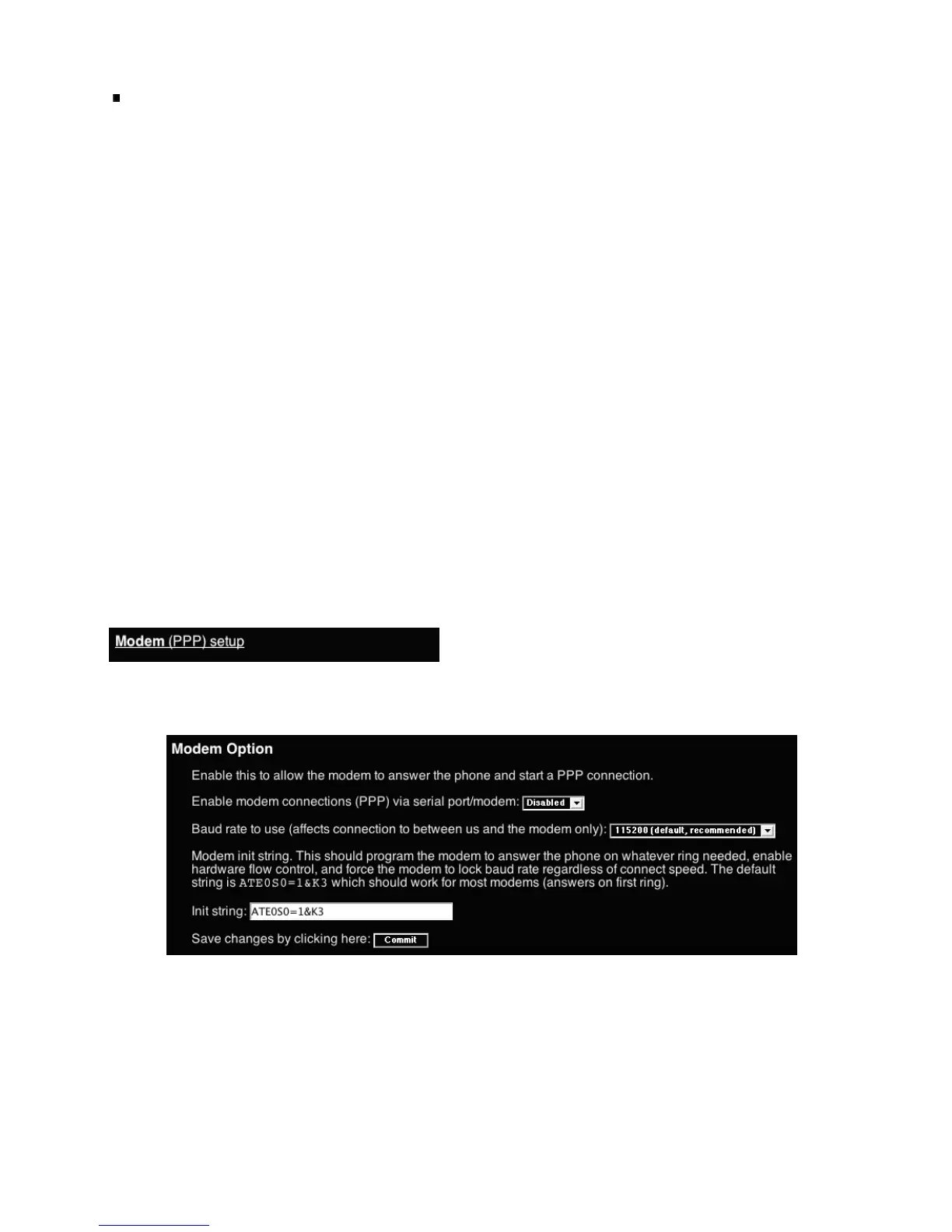 Enable modem connections (PPP) via serial port/modem: select Enabled.