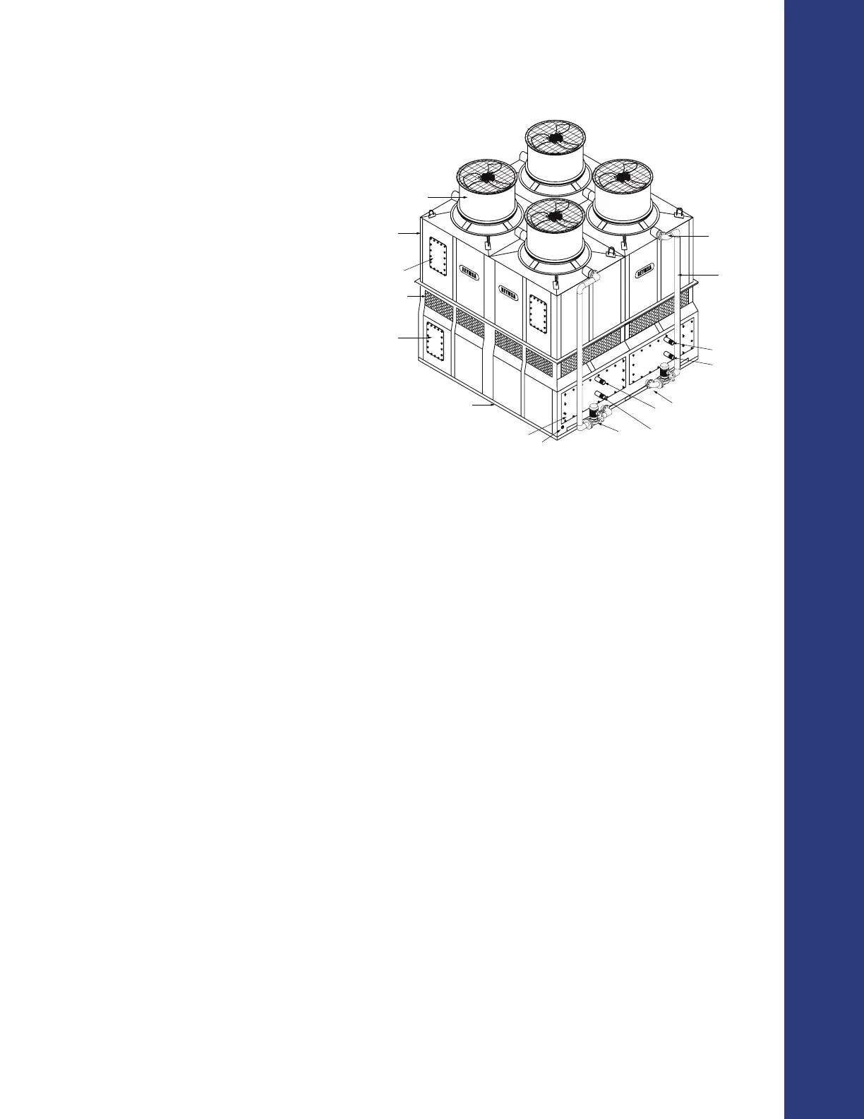 ▪ Induced draft - The fan is located on top of the tower, over the ll section so that the air is pulled through
