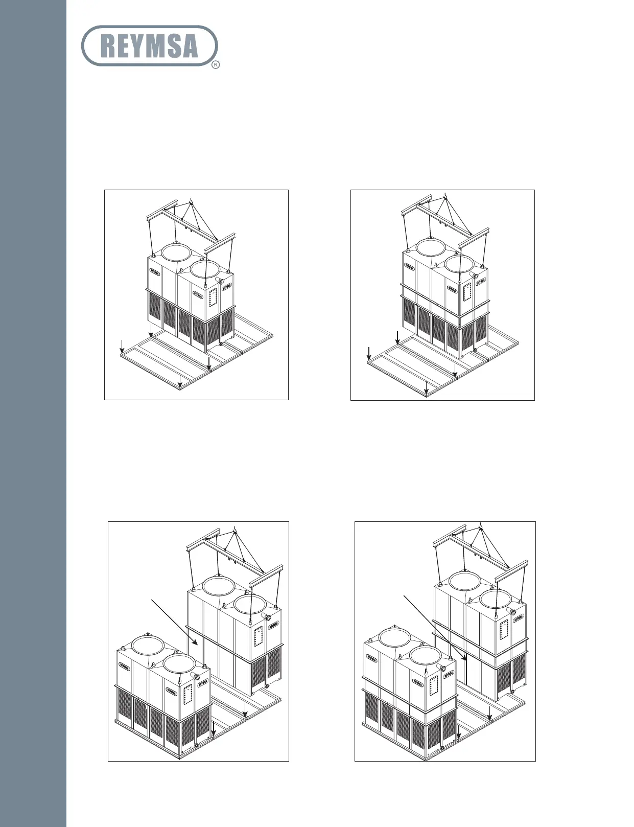 A. Once the basin and body sections have been assembled, lift the Tower using a crane and a spreader bar