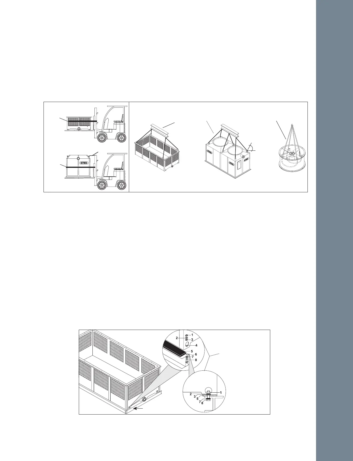 horizontal. The basin section of the Double Fan towers has U-bolts on the flange for lifting, one on each