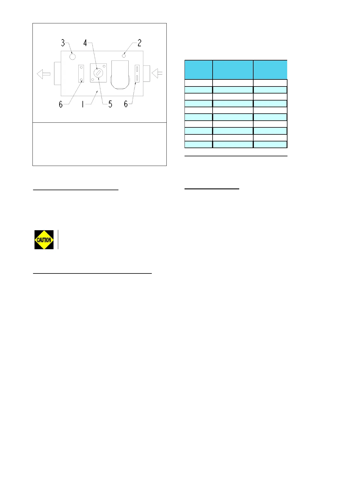 The control operates with the settings given in table