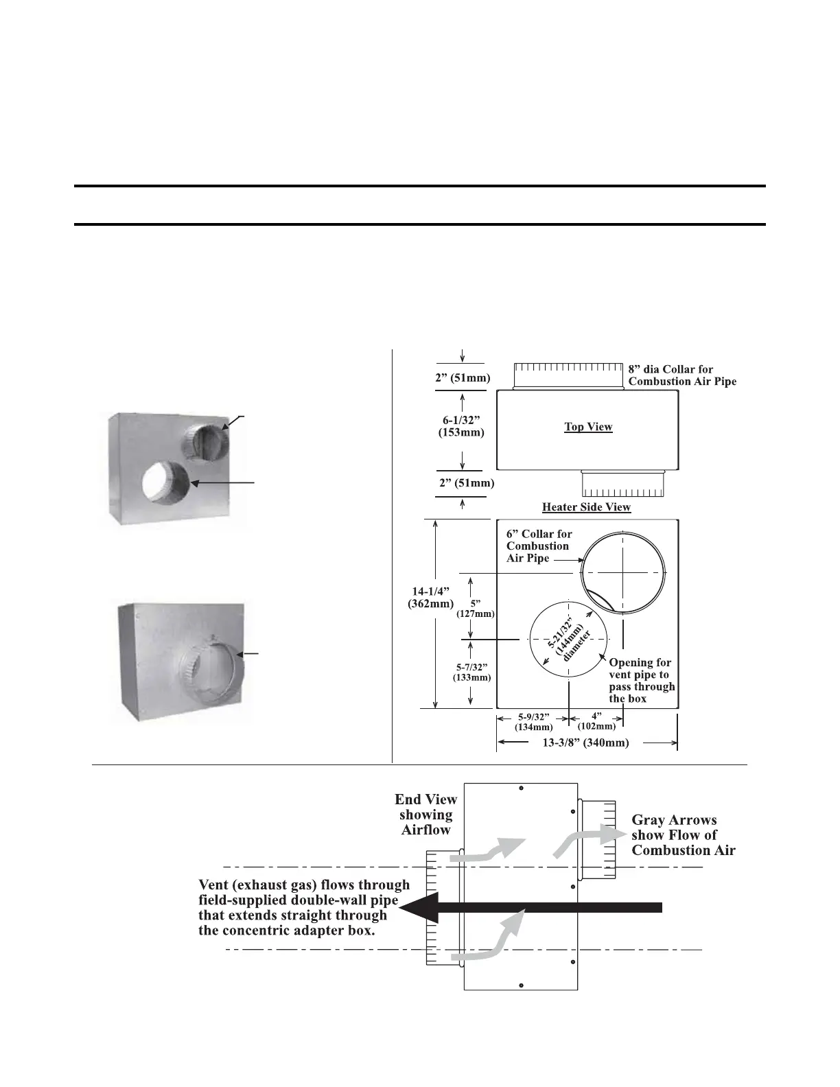 The concentric adapter box (PN 205885) is included in the vent/combustion air kit. Installation instructions depend