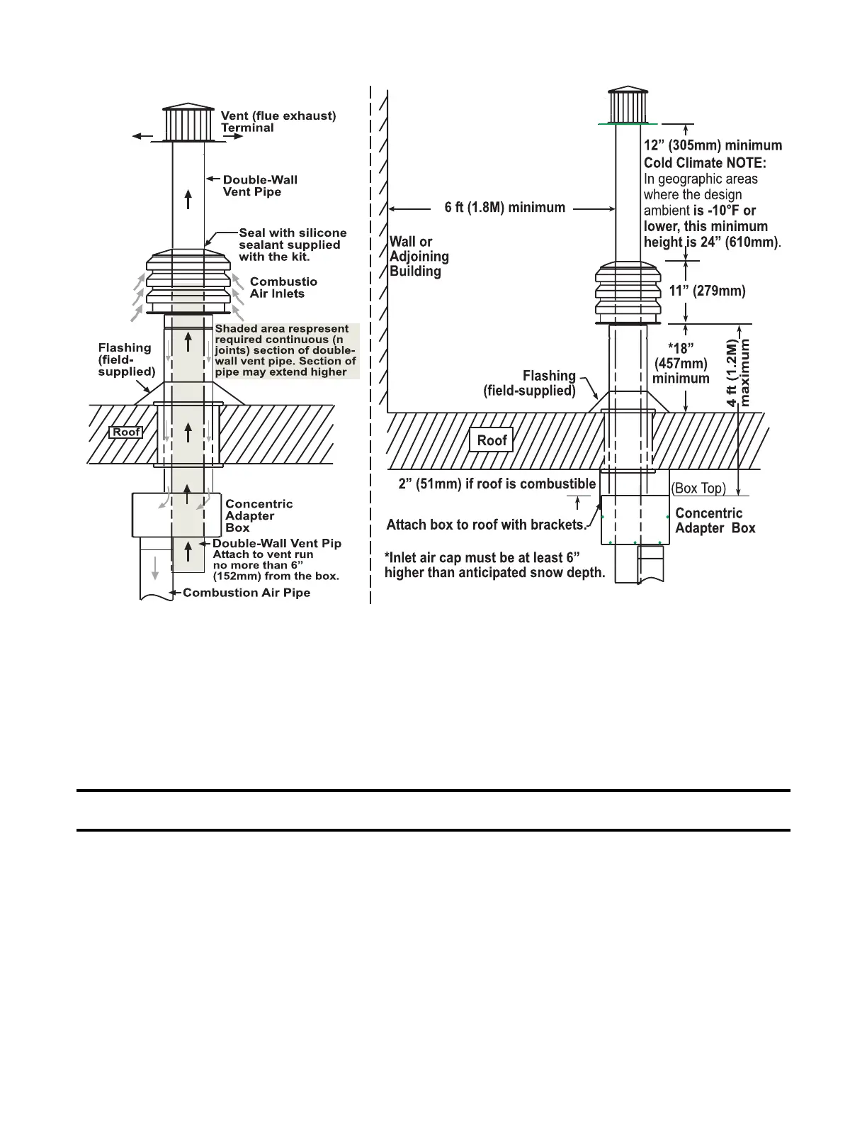 snow depth. Ensure that length of combustion air pipe does not exceed 48 inches (1219 mm) or does not