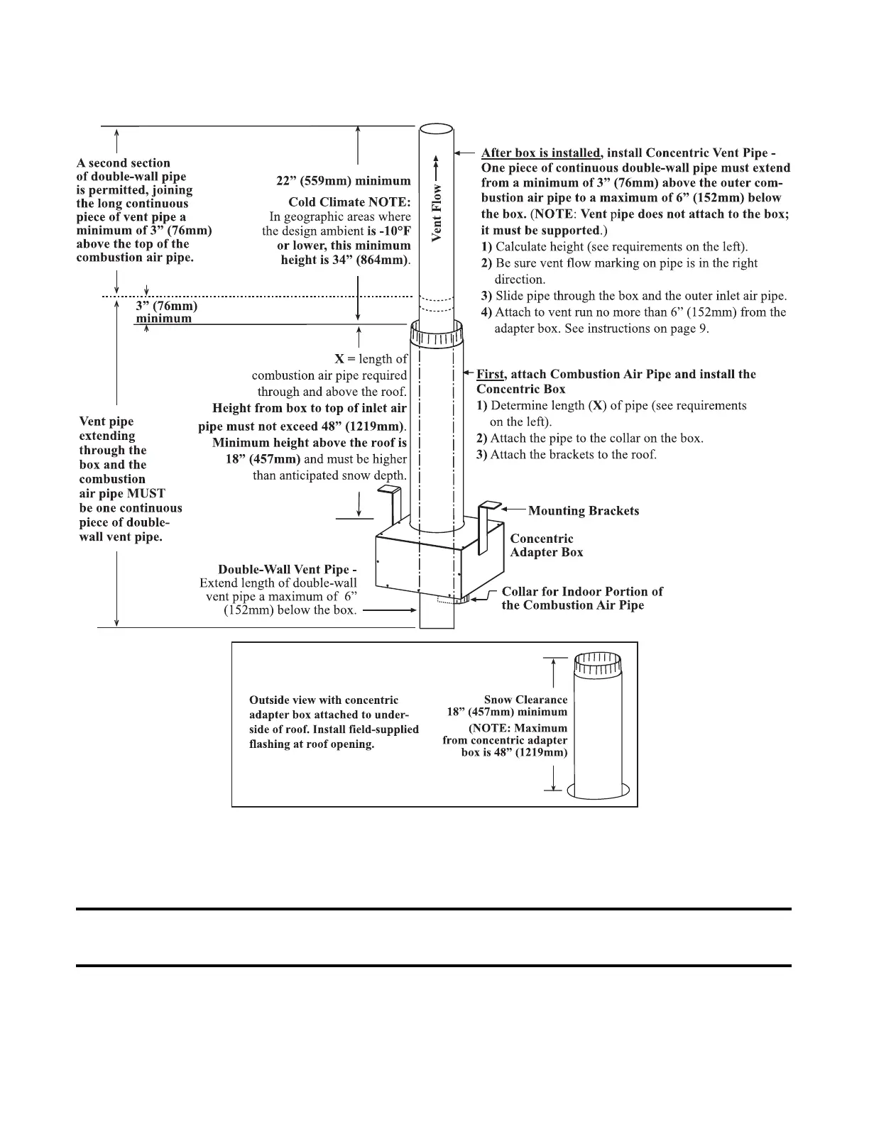 length by adding requirements: starting at top, vent pipe must extend minimum of 22 inches (559 mm) beyond