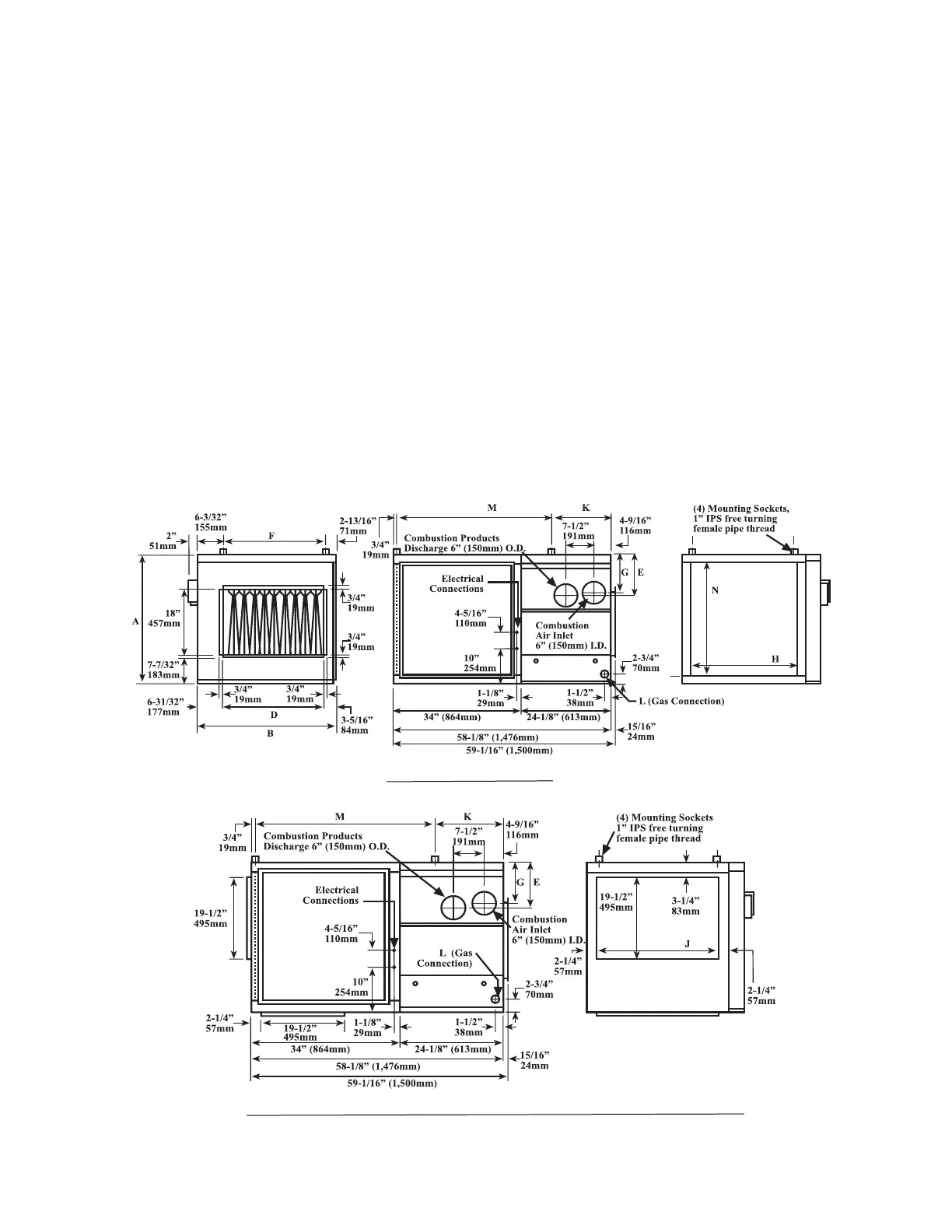 All dimensions for the model SCE unit heater are shown in Figure 2 and are listed in Table 1.