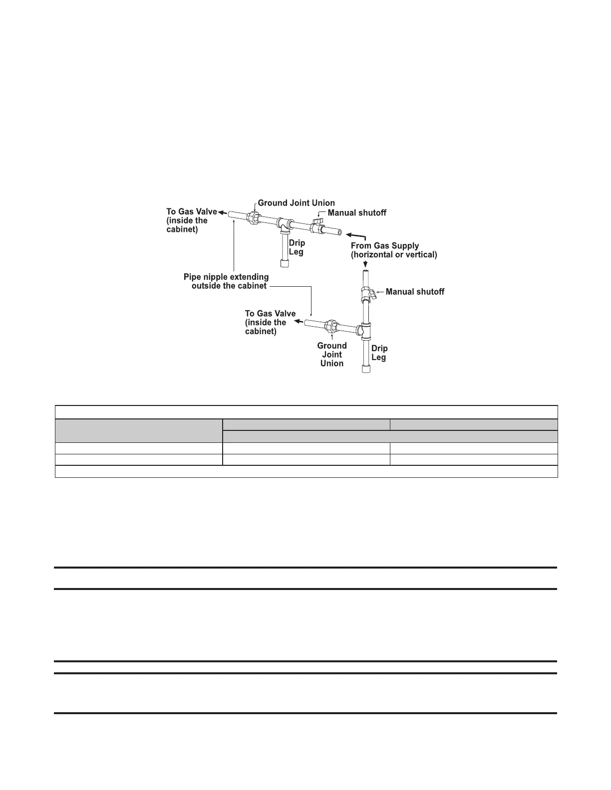 codes may require a drip leg longer than 3 inches (typically 6 inches). To permit burner removal, this drip leg must