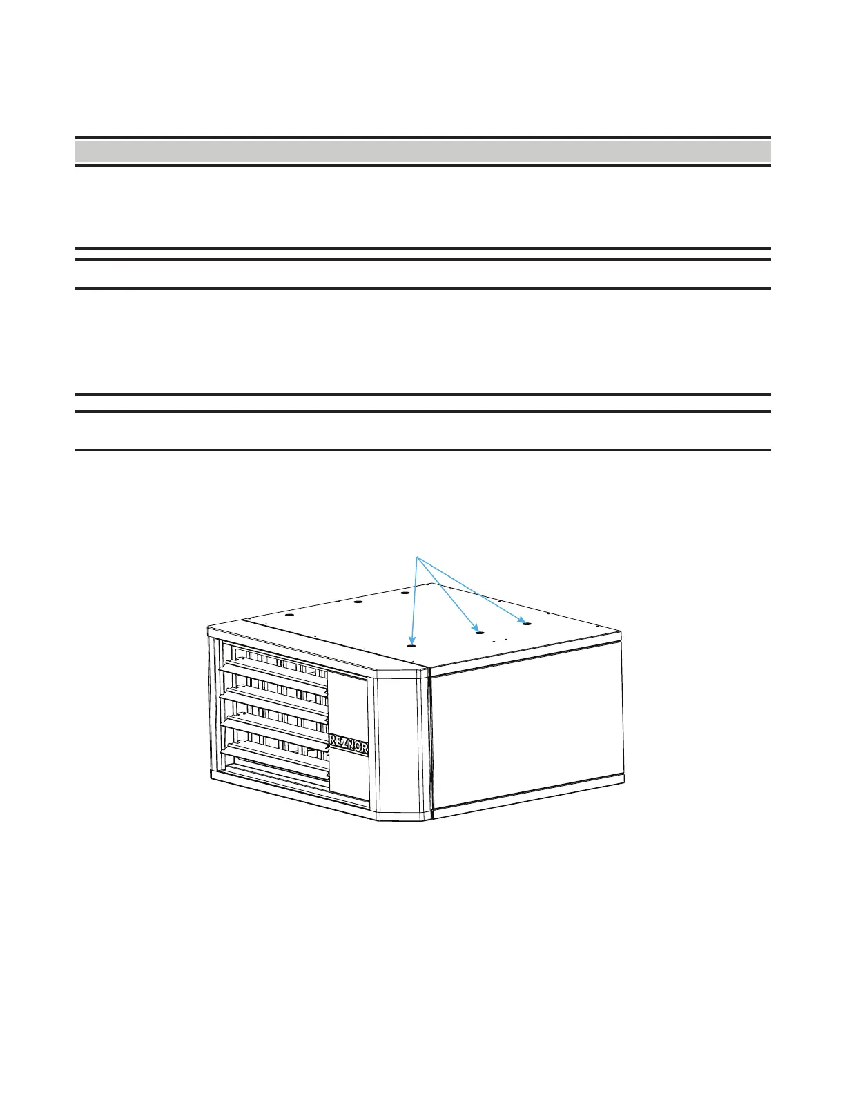 • Using capscrews and washers, seal any unused holes in the top of the heater after installing the hanging hardware
