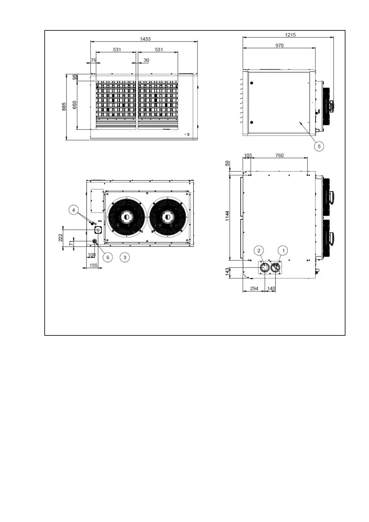 1. Combustion air inlet ( 100mm) 4. Electrical connections