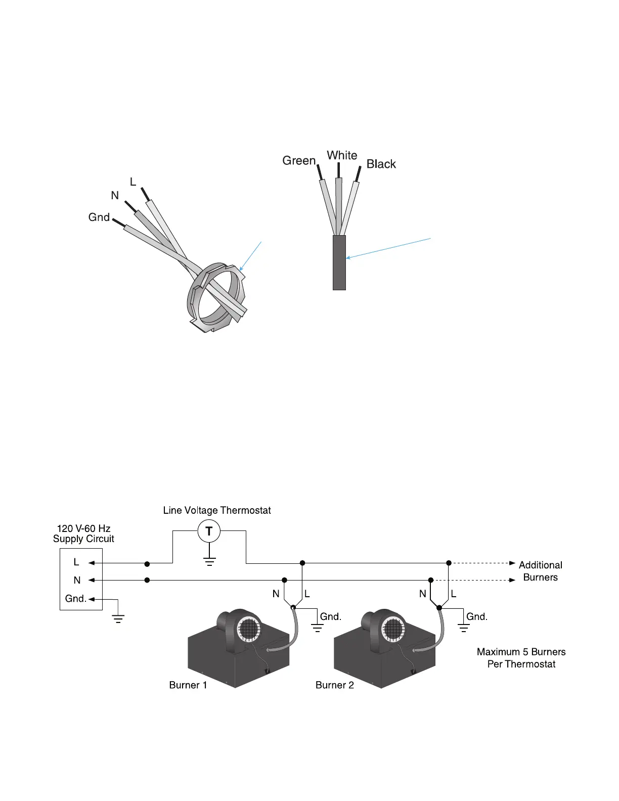 • Line voltage thermostat: For models VZ and VZH, install the line voltage thermostat in accordance with the