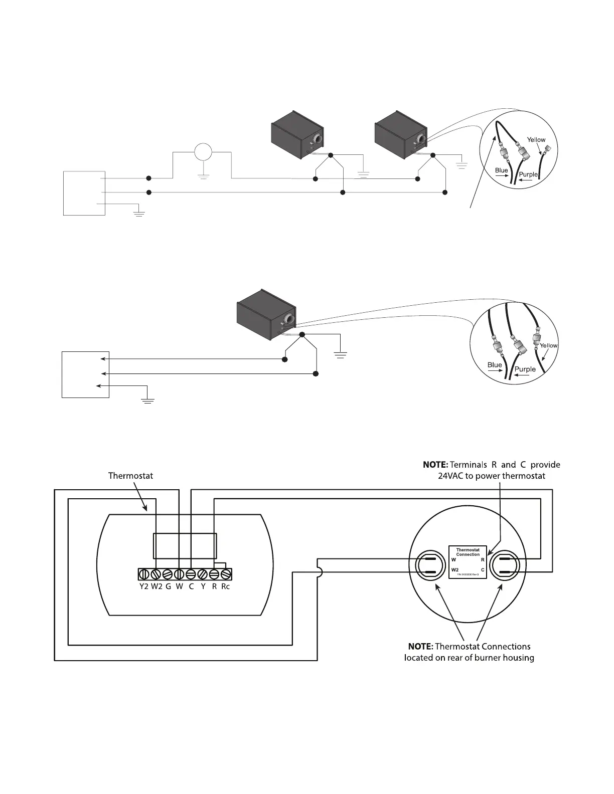 NOTE: Yellow and Purple wires provide 24 VAC to power thermostat