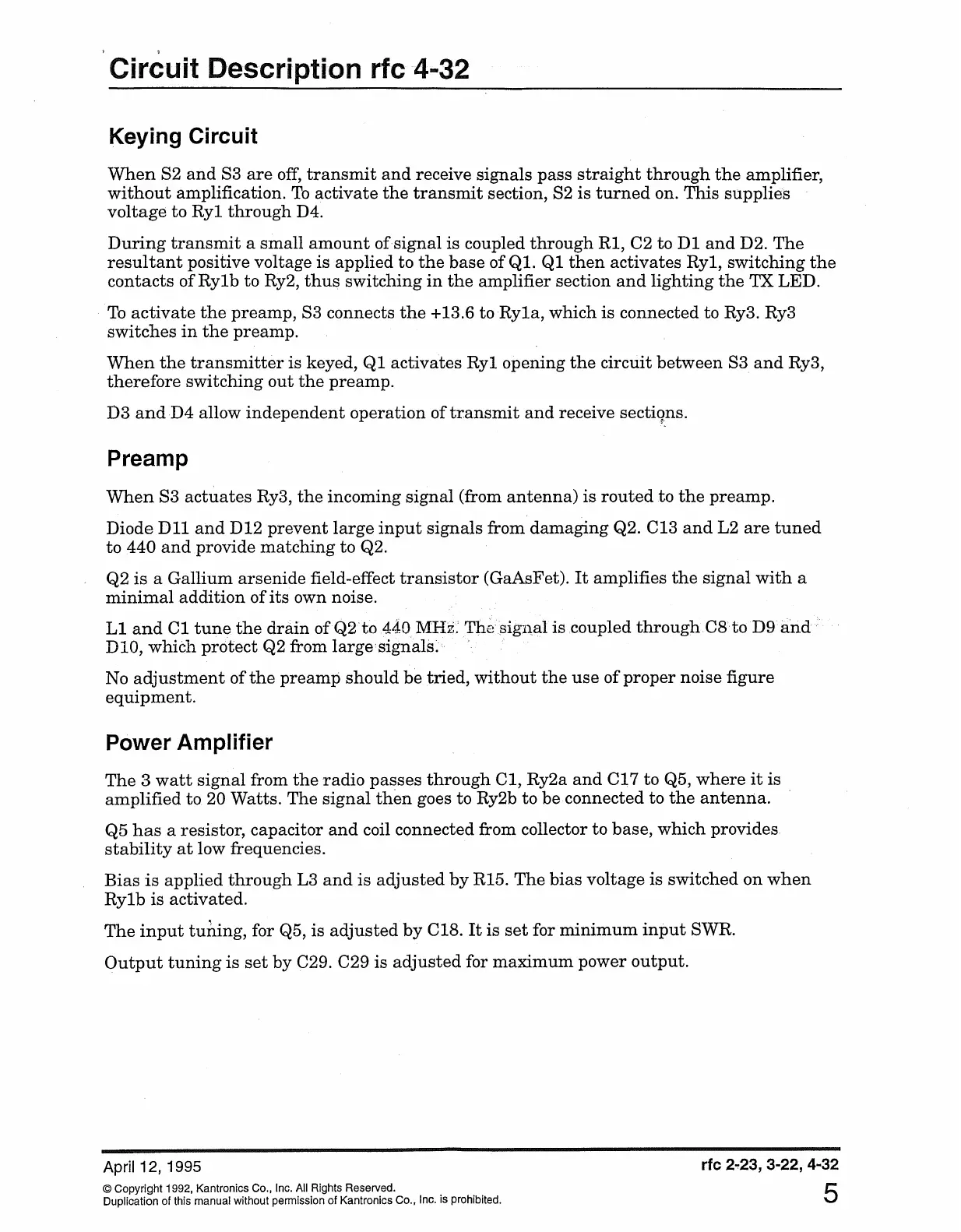 RF Concepts rfc 2-23 - Circuit Description RFC 4-32; Keying Circuit Operation; Preamp Circuit; Power Amplifier Circuit