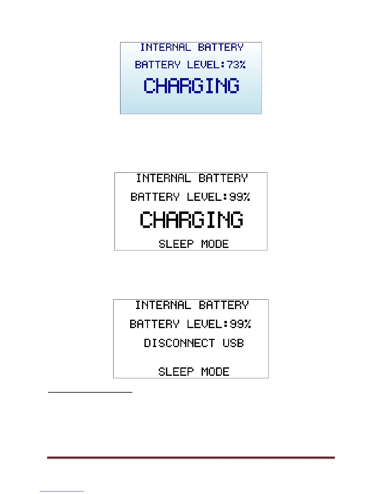 The INTERNAL BATTERY screen, at this point, can re-calibrate the available battery power level. This is a
