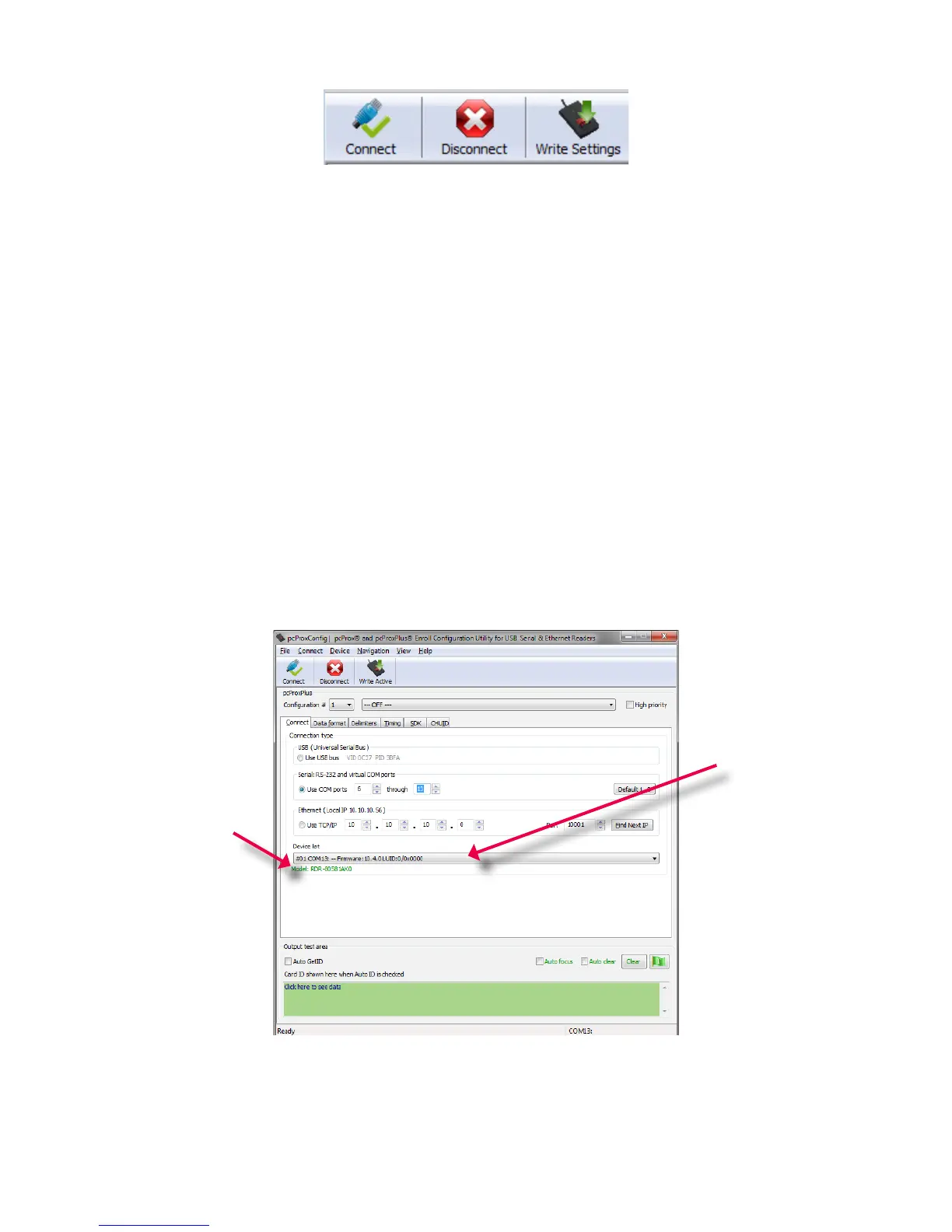 Clicking the Connect icon button commands the utility to search for a device through all available
