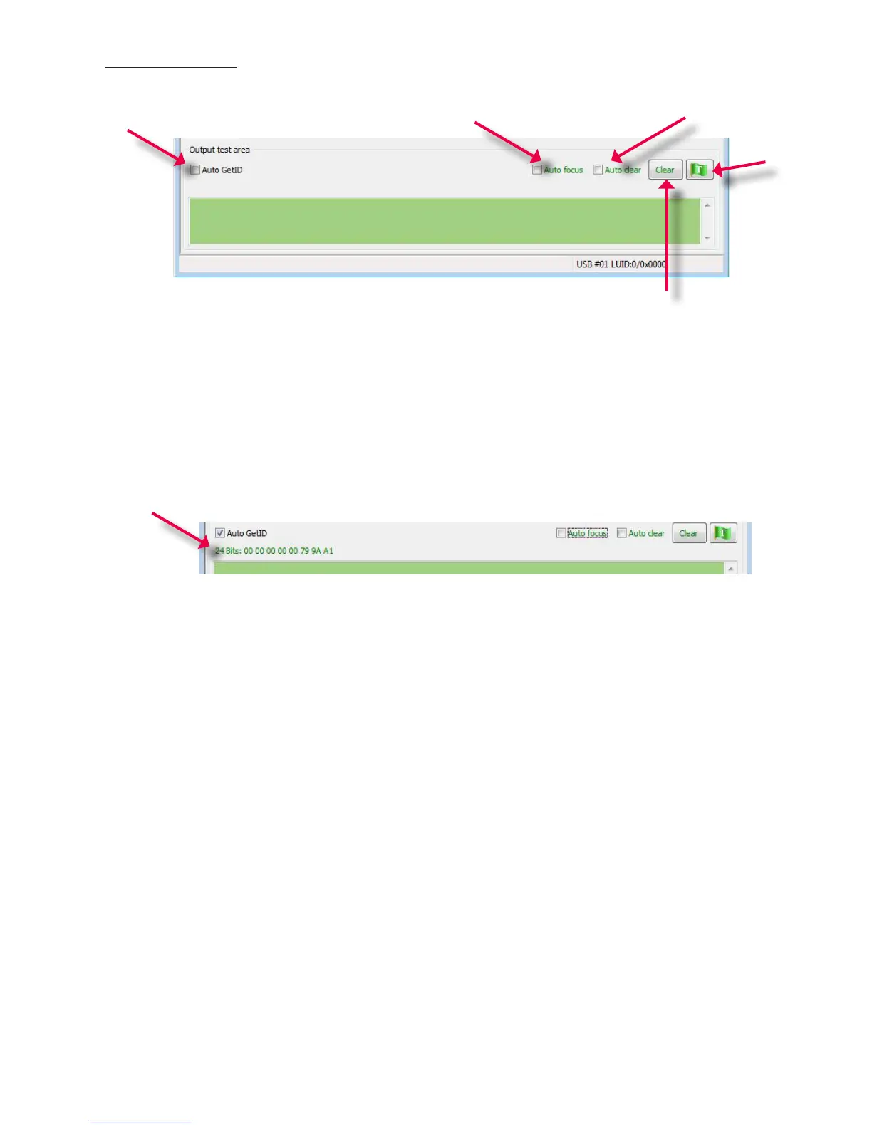 The Auto Clear box auto selects all text in the Output Test Area, so that new keystrokes output by
