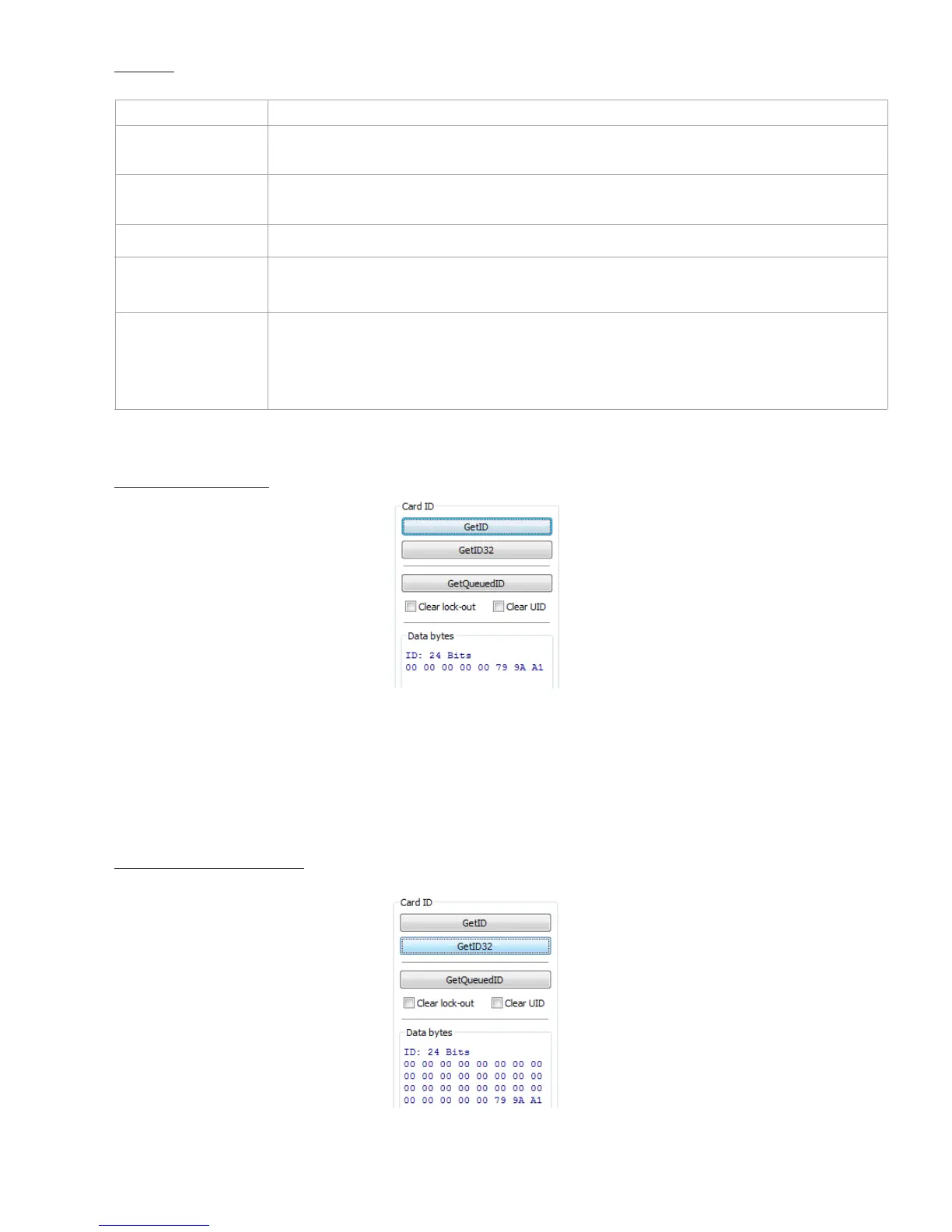 GetQueuedID Click to display the last card data read. This returns 255 bits maximum.