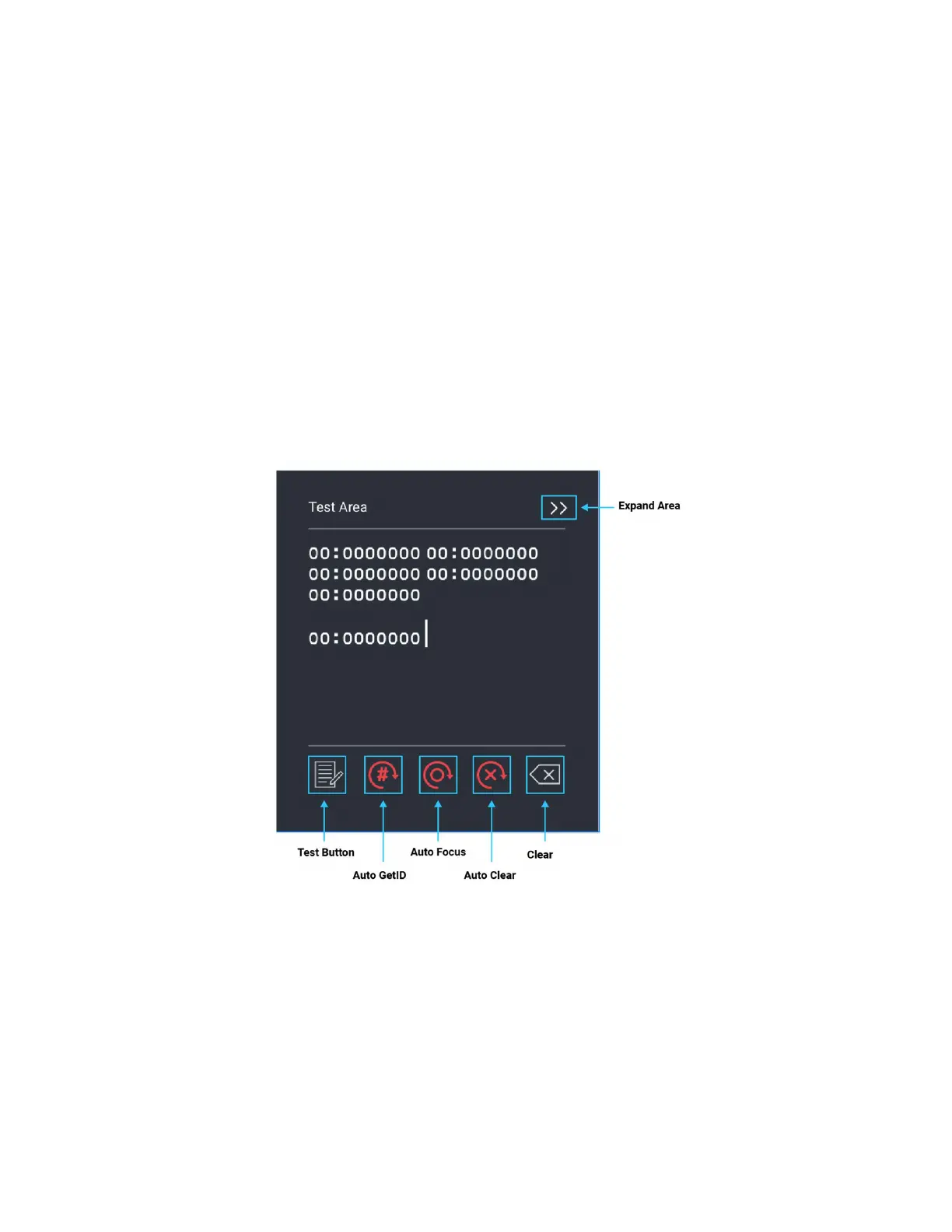 This is the test area for the keystrokes entered by the reader On serial readers this displays