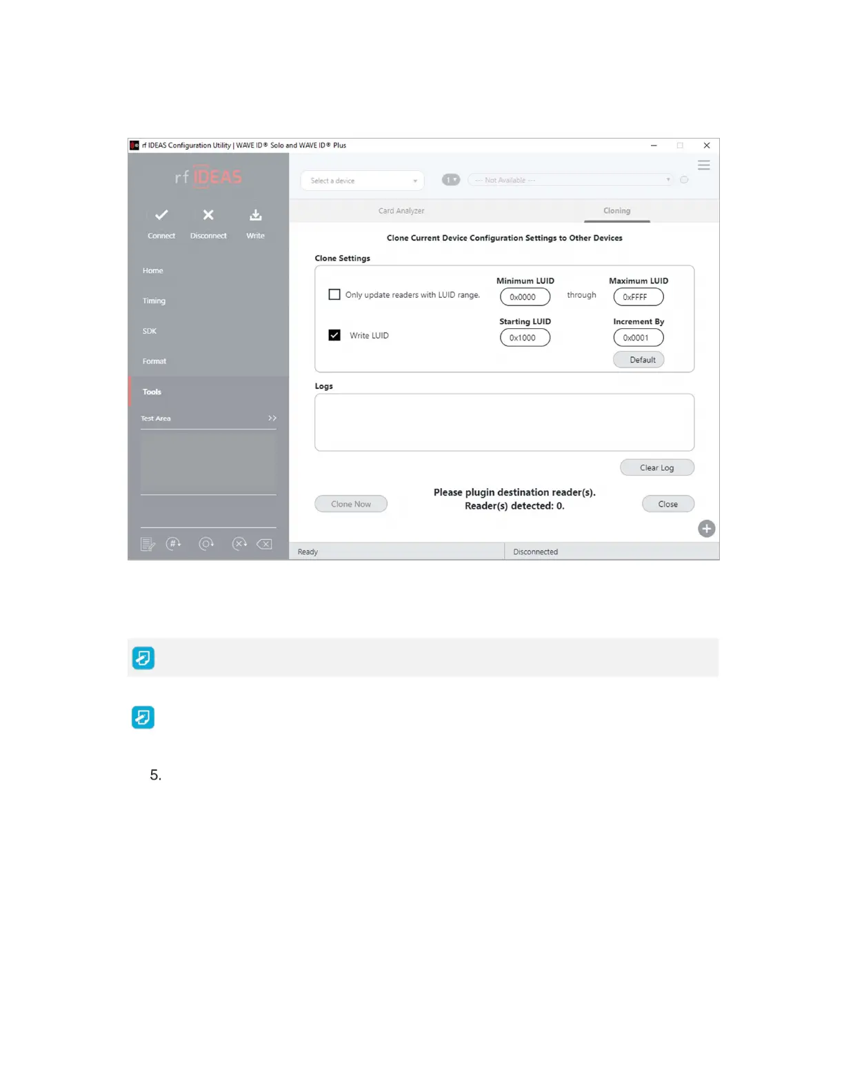 Connect the destination readers that will be undergoing the cloning process and