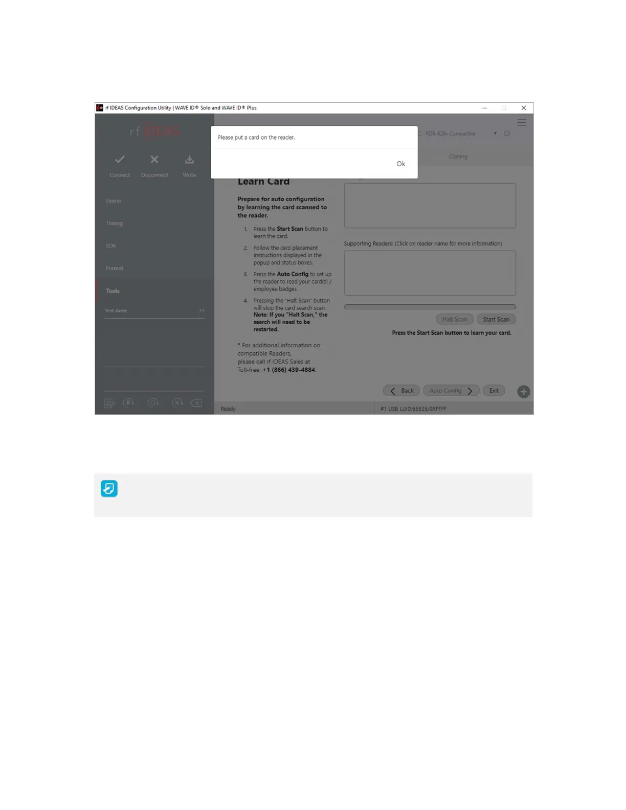 2 When prompted place a card on the reader click the OK button
