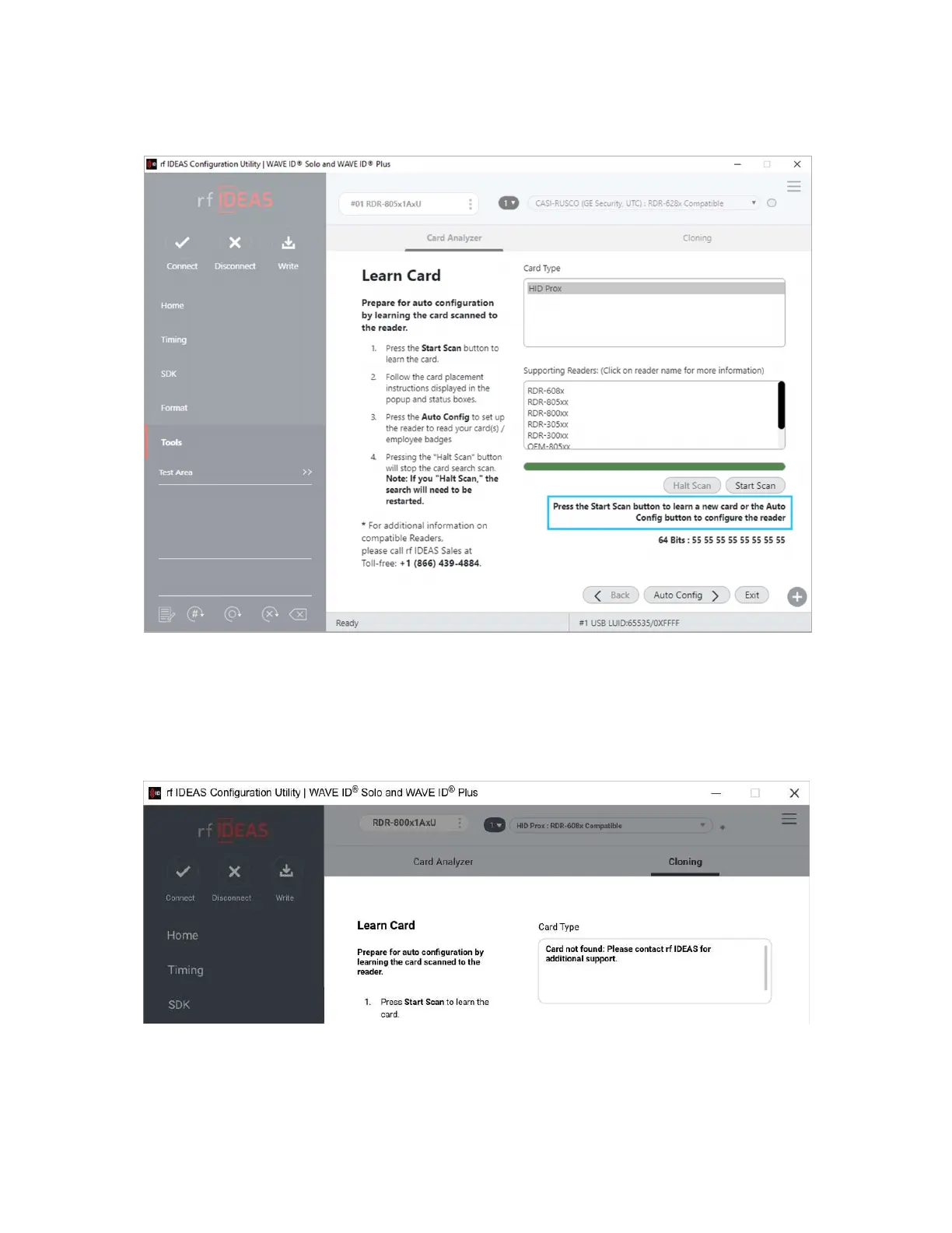 application will display Card not found: Please contact rf IDEAS for additional support